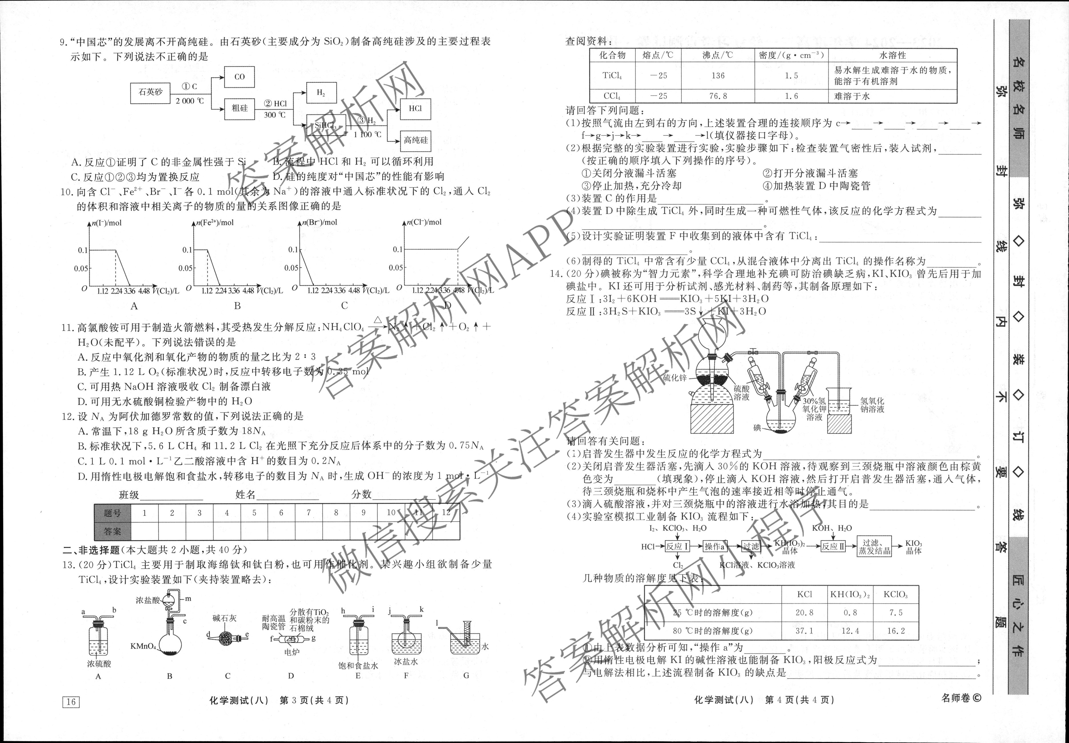 衡水名师卷2023-2024学年度高三一轮复习考点测试卷化学(40分钟空心菱形)(八)8试题