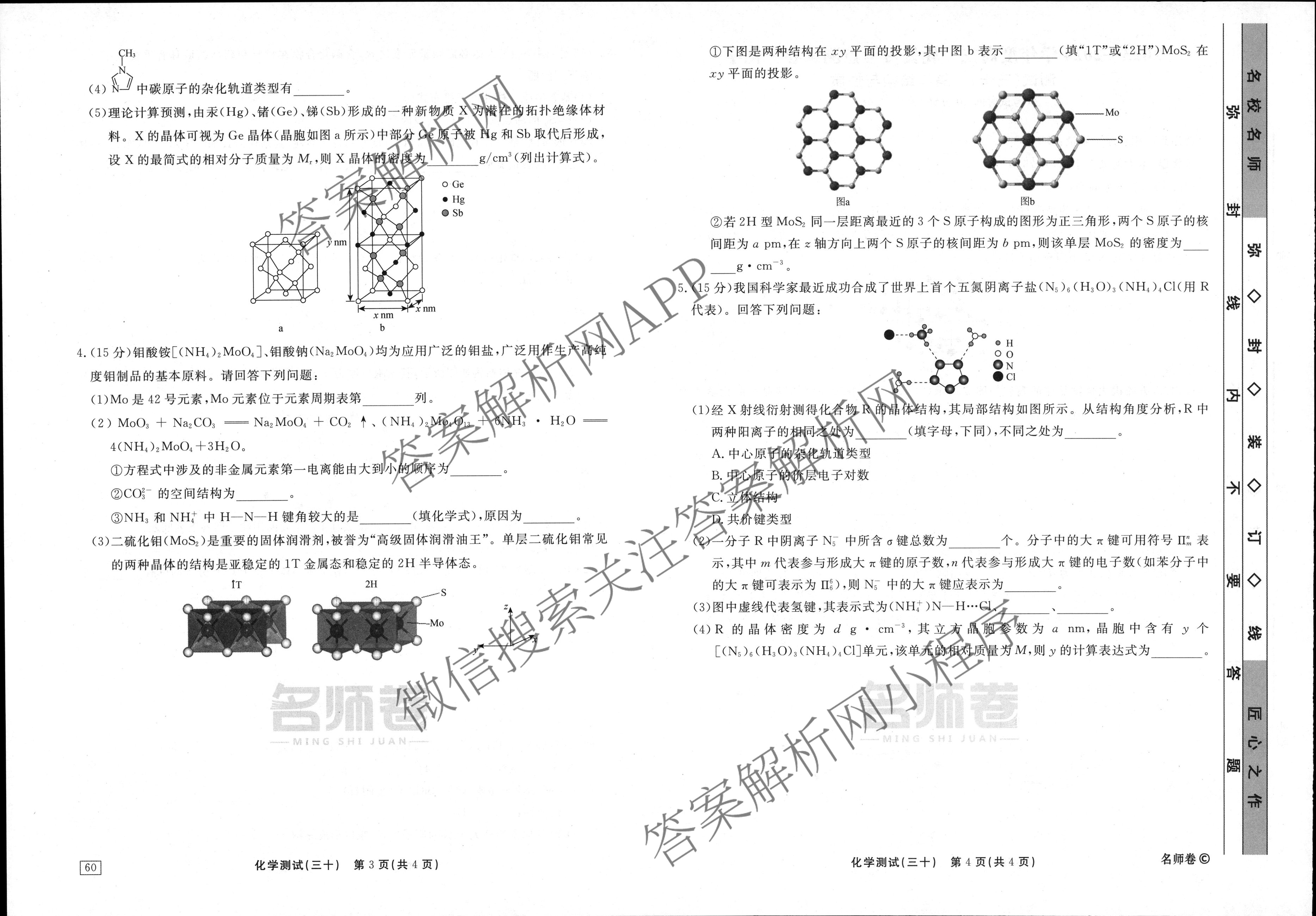 衡水名师卷2023-2024学年度高三一轮复习考点测试卷化学(40分钟空心菱形)(三十)30试题