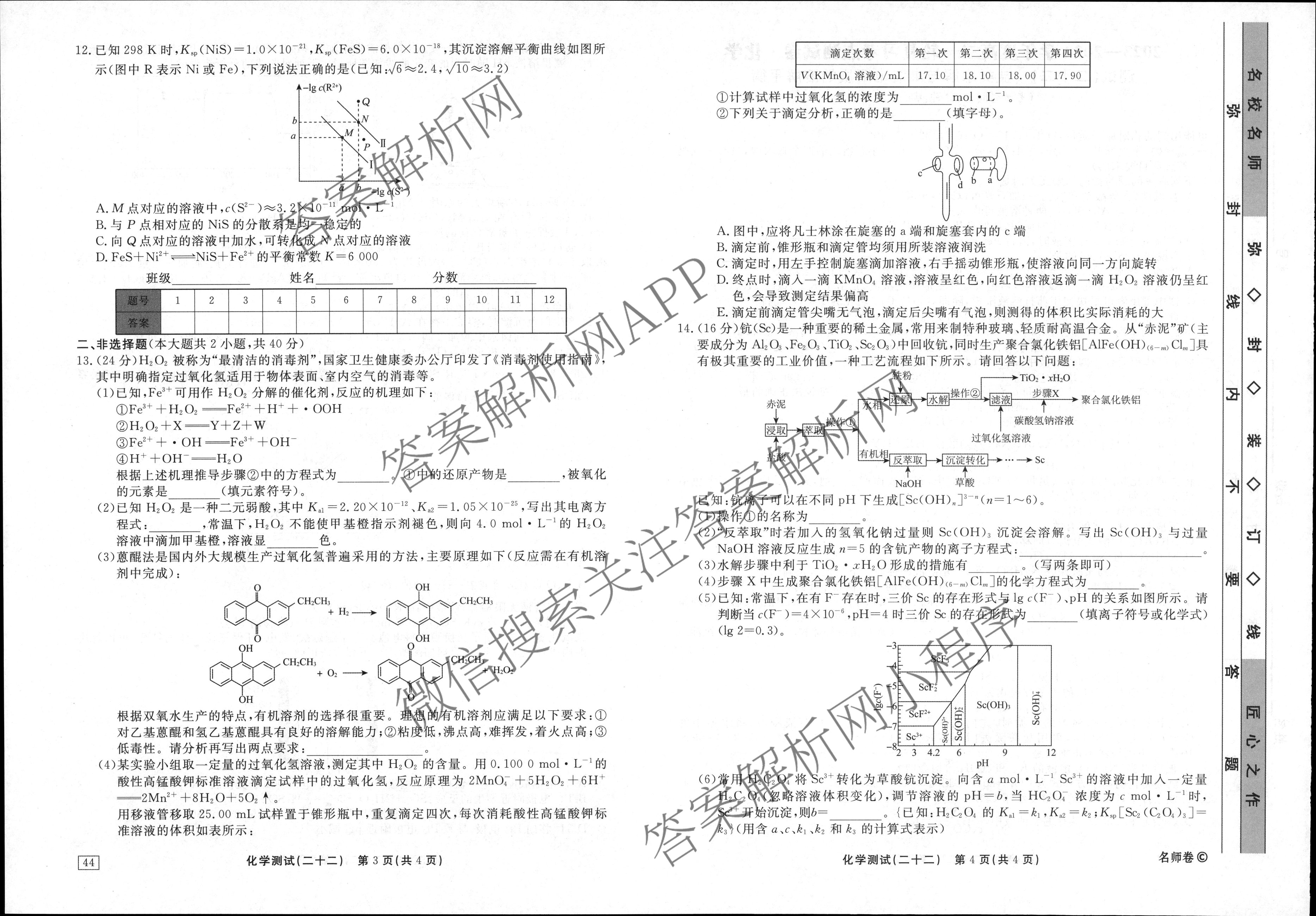 衡水名师卷2023-2024学年度高三一轮复习考点测试卷化学(40分钟空心菱形)(二十二)22试题