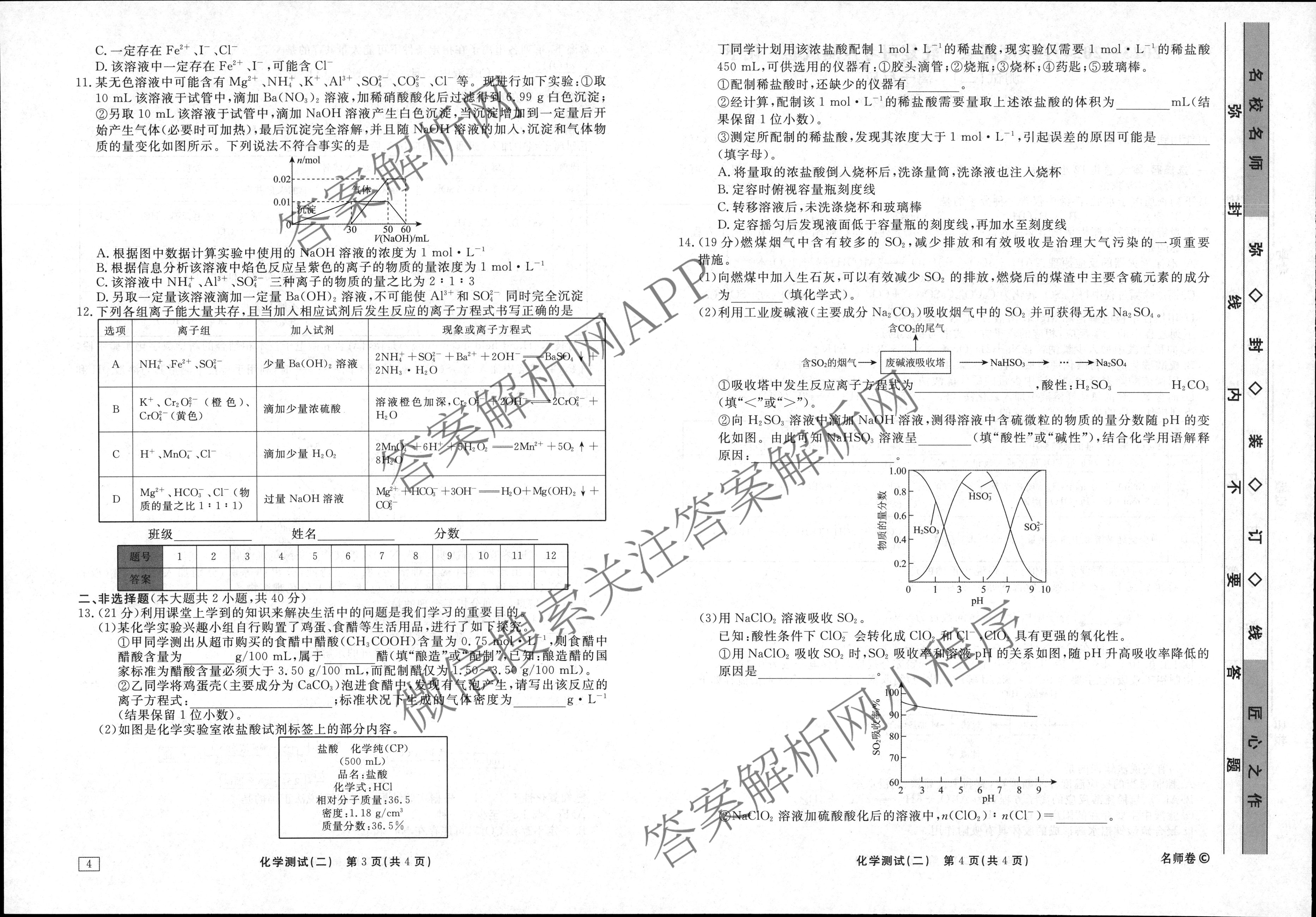衡水名师卷·2023-2024学年度高三一轮复习考点测试卷·化学(40分钟·空心菱形)(二)2试题,目前分科卷答案网已经汇总了衡水名师卷·2023-2024学年度高三一轮复习考点测试卷·化学(40分钟·空心菱形)(二)2试题的各科答案和试卷,获取更多衡水名师卷答案解析,请在关注本站。
