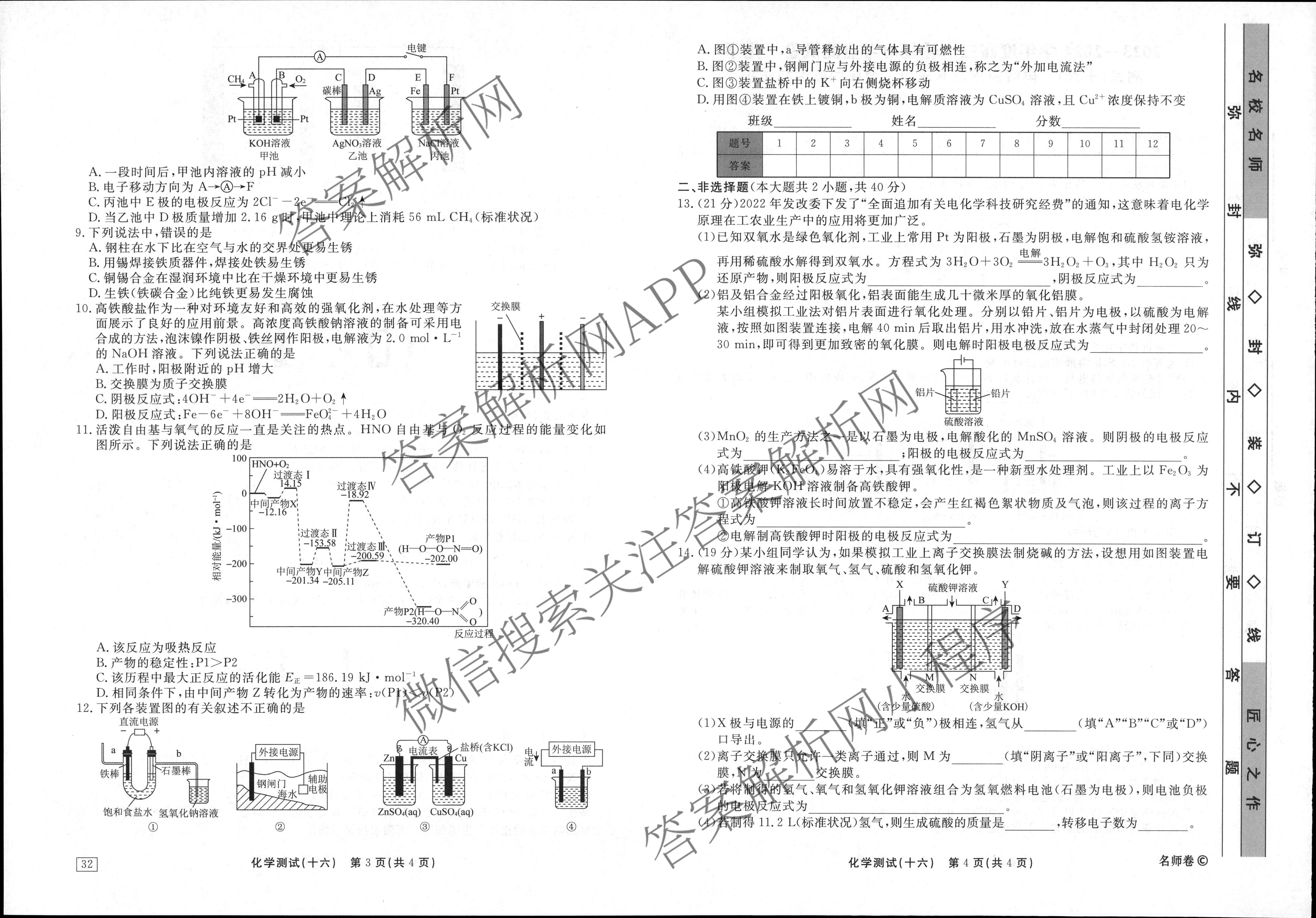 衡水名师卷2023-2024学年度高三一轮复习考点测试卷化学(40分钟空心菱形)(十六)16试题