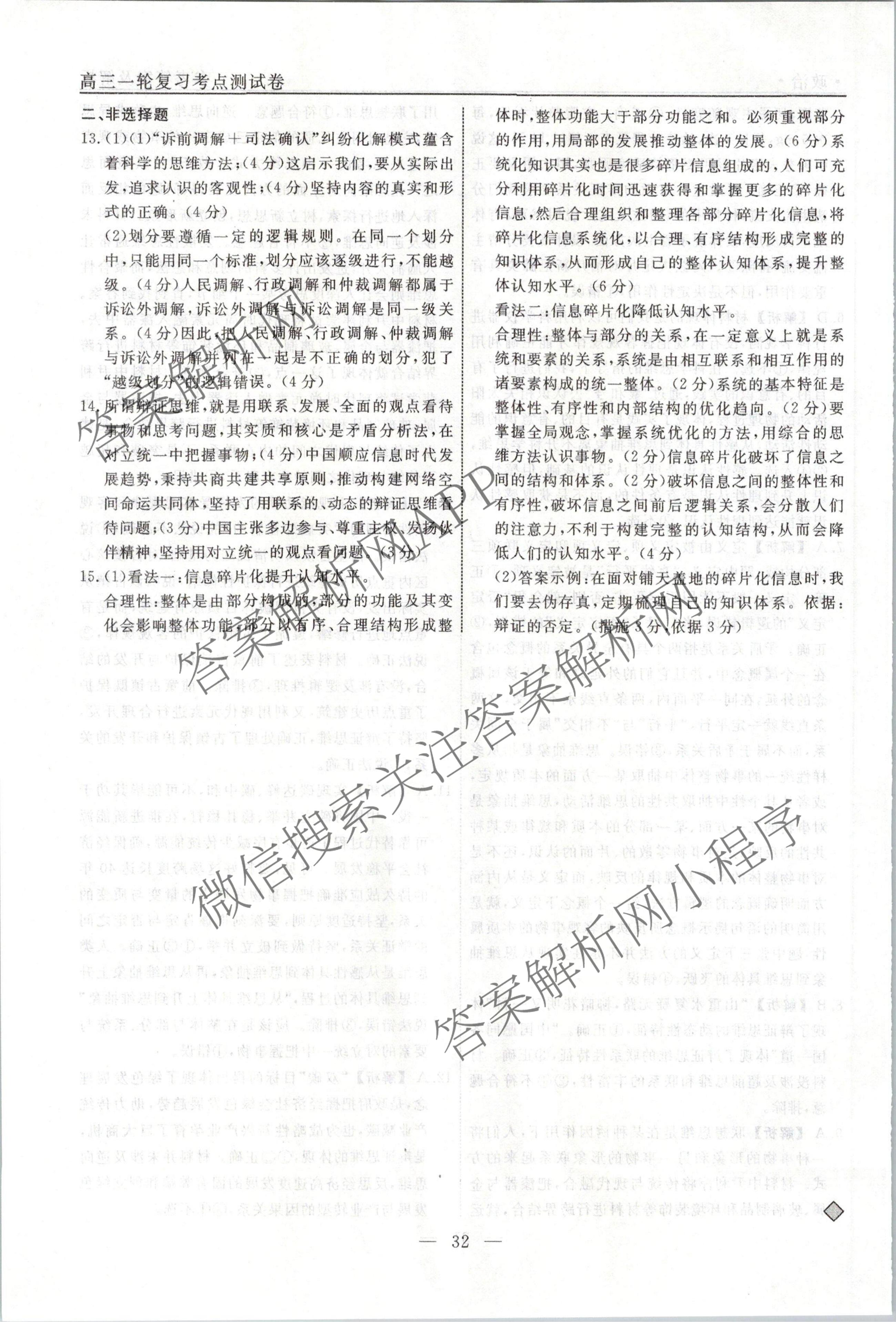 衡水名师卷2023-2024学年度高三一轮复习考点测试卷政治(40分钟实心菱形)(三十)30答案