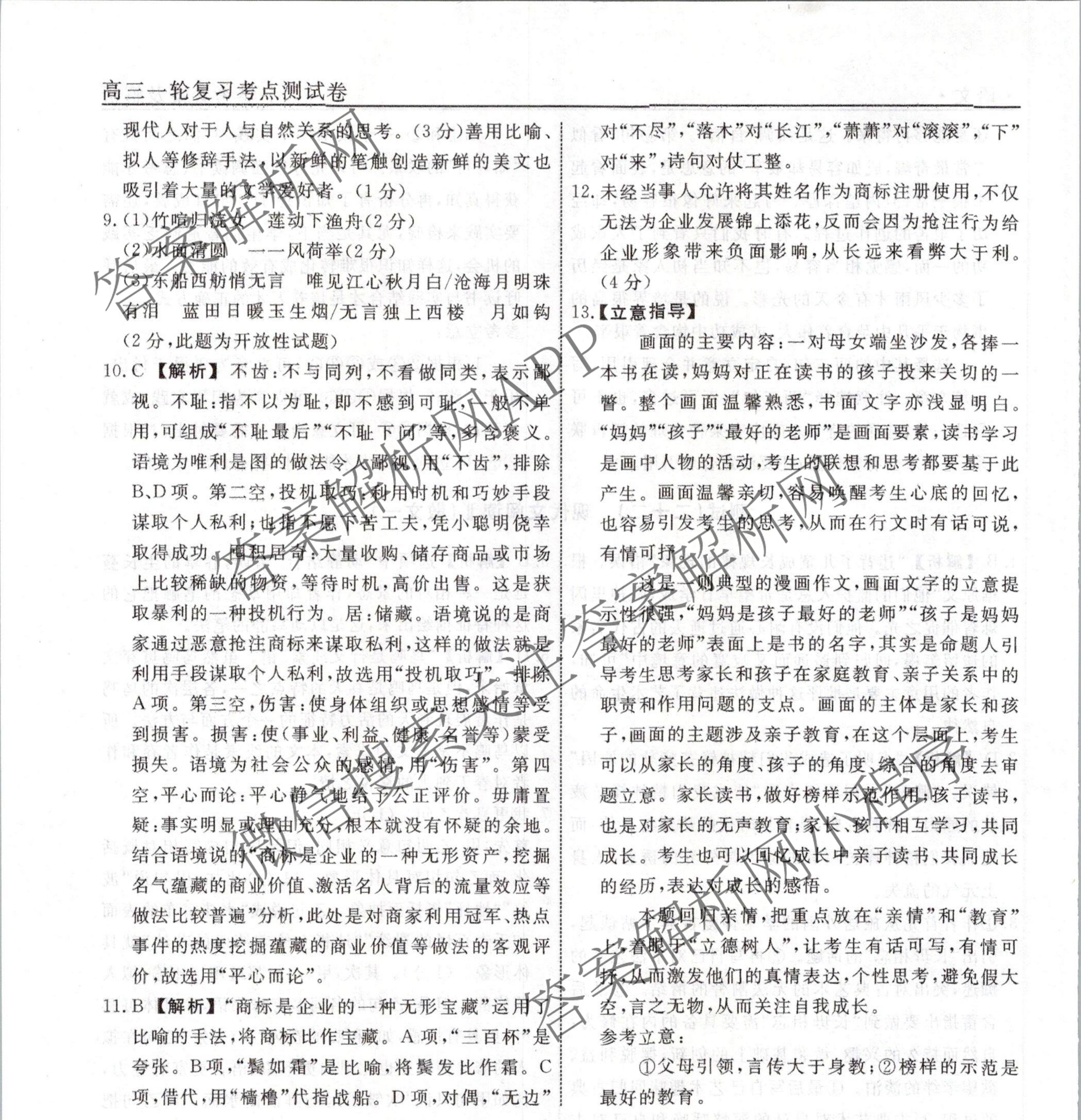衡水名师卷2023-2024学年度高三一轮复习考点测试卷语文(40分钟实心菱形)(二十二)22答案