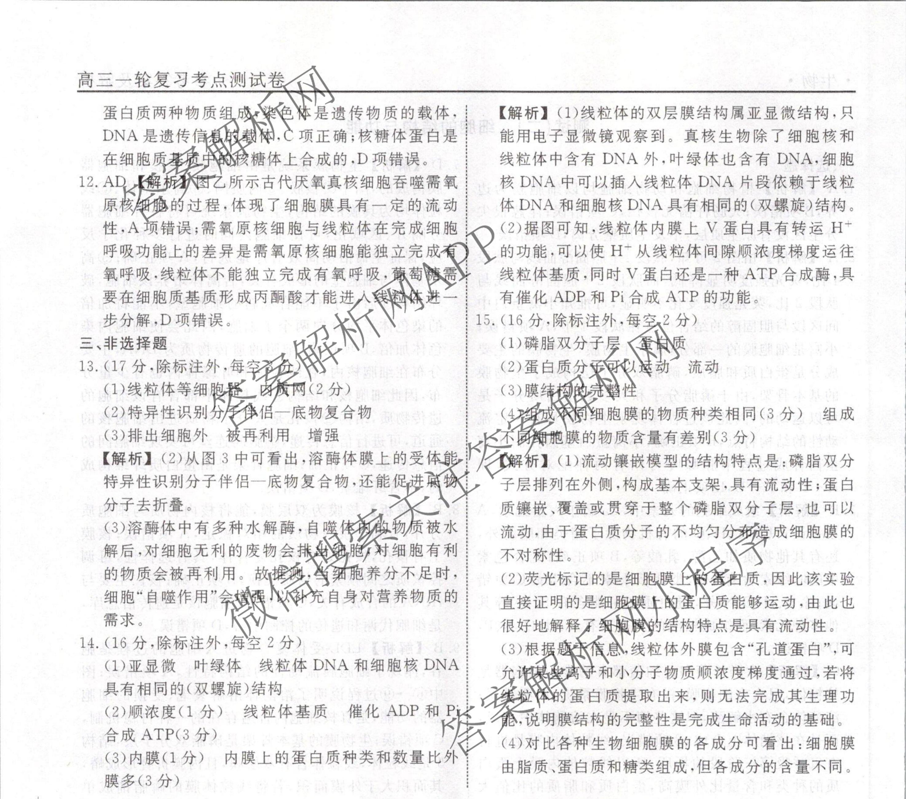 衡水名师卷2023-2024学年度高三一轮复习考点测试卷生物(40分钟双菱形)(二)2答案