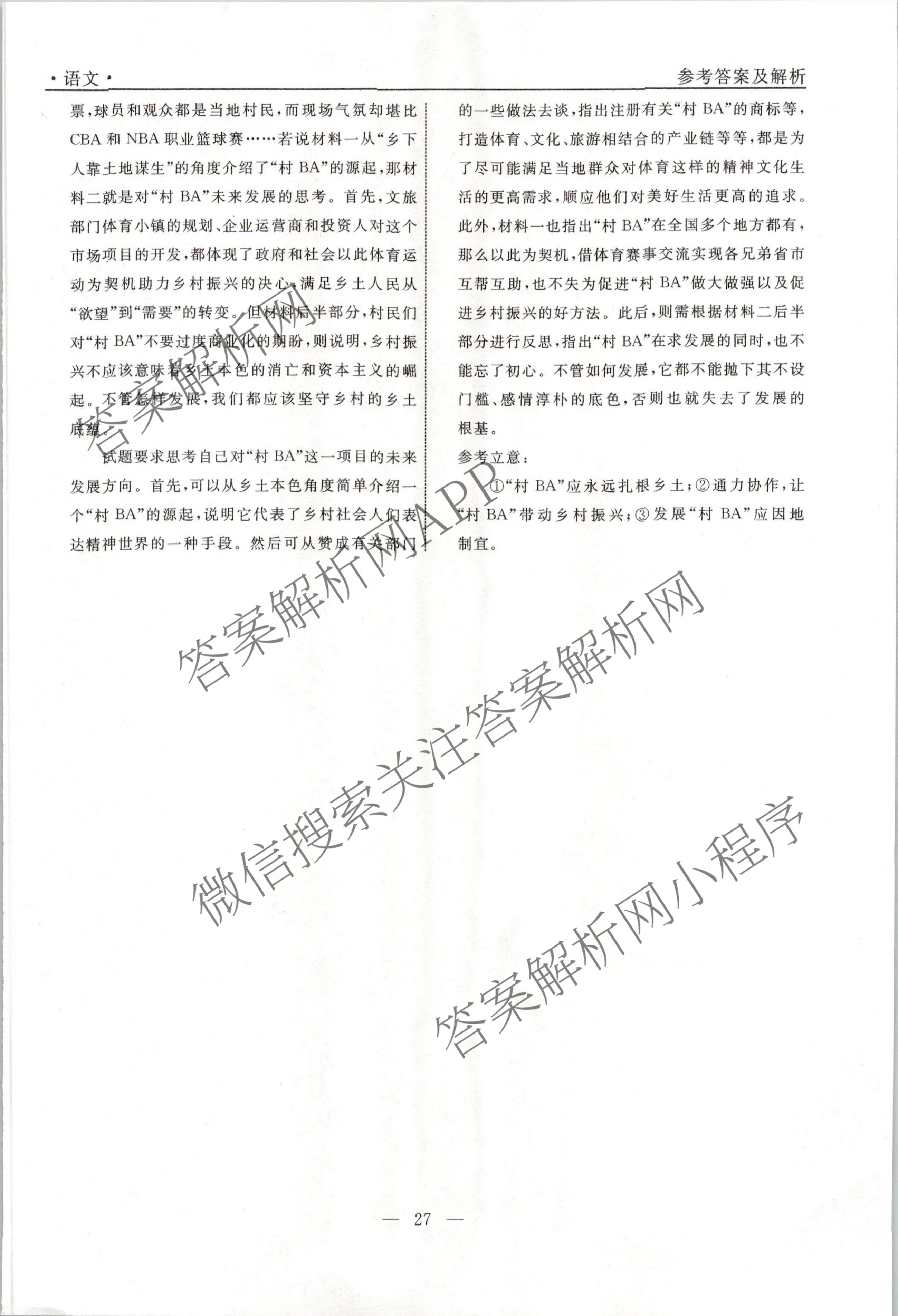 衡水名师卷2023-2024学年度高三一轮复习考点测试卷语文(40分钟实心菱形)(三十)30答案