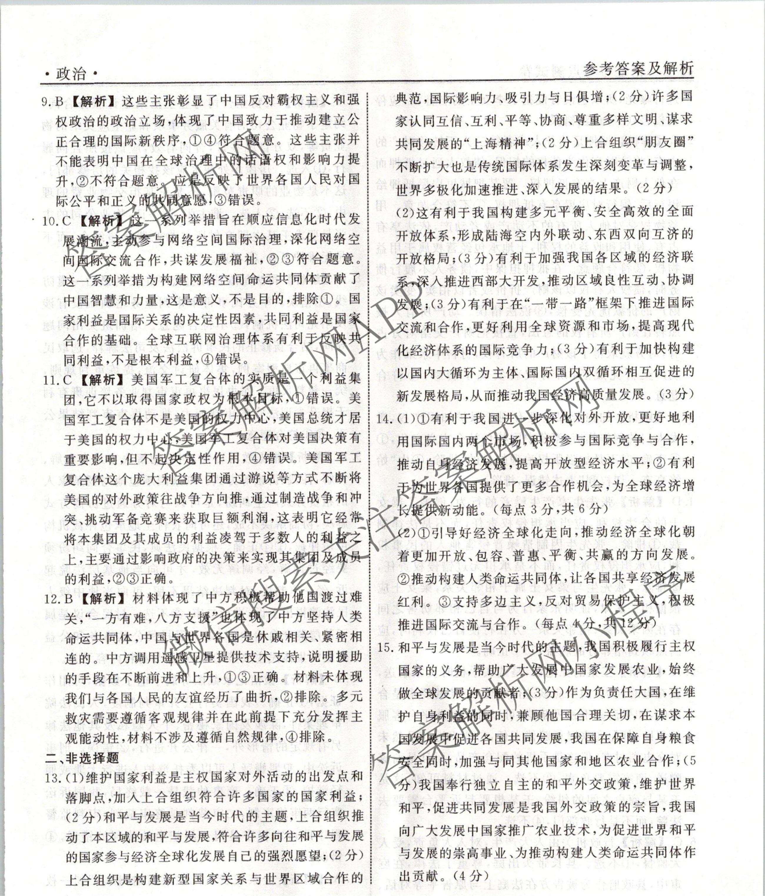 衡水名师卷2023-2024学年度高三一轮复习考点测试卷政治(40分钟实心菱形)(二十六)26答案