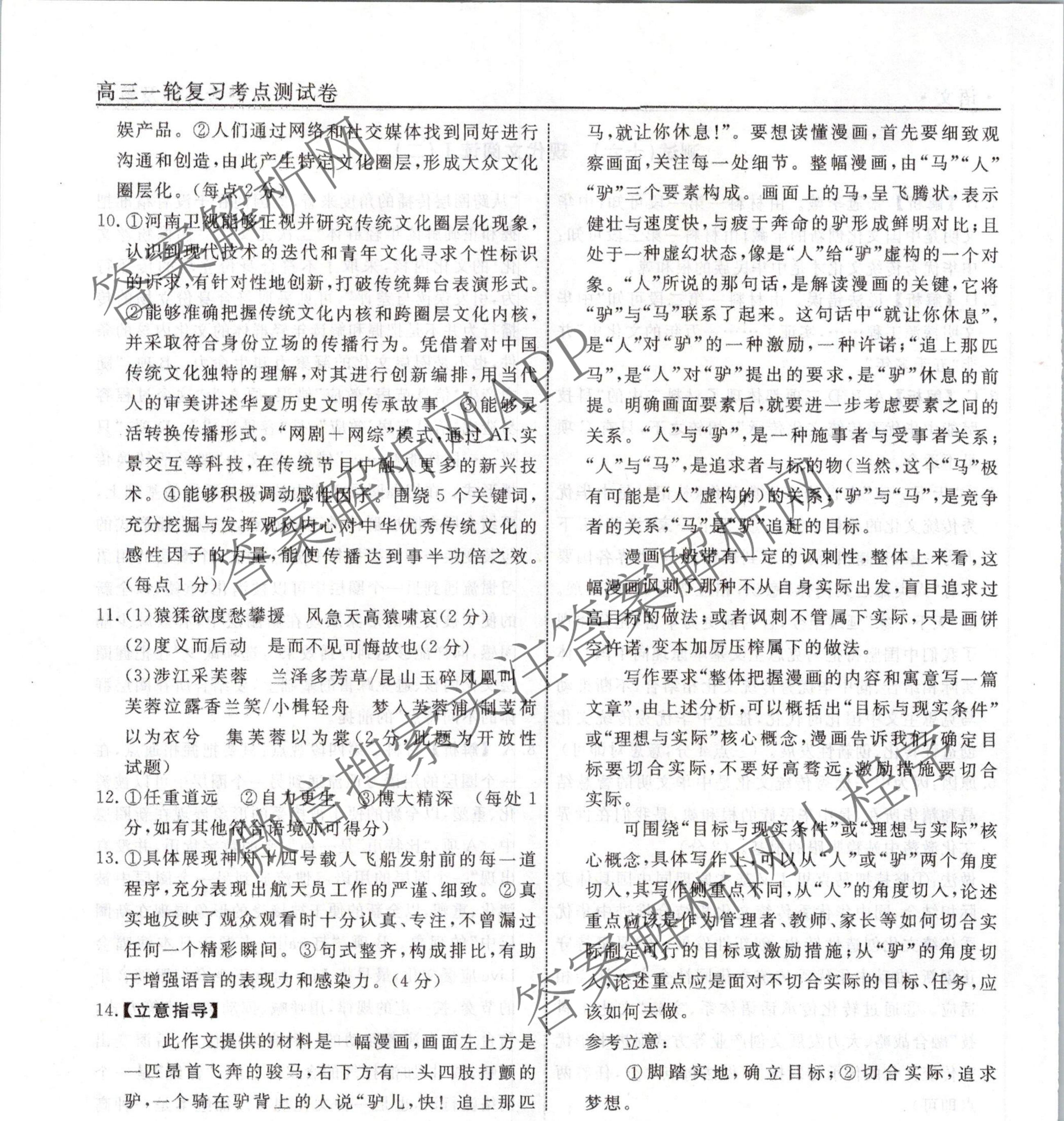 衡水名师卷2023-2024学年度高三一轮复习考点测试卷语文(40分钟实心菱形)(十六)16答案