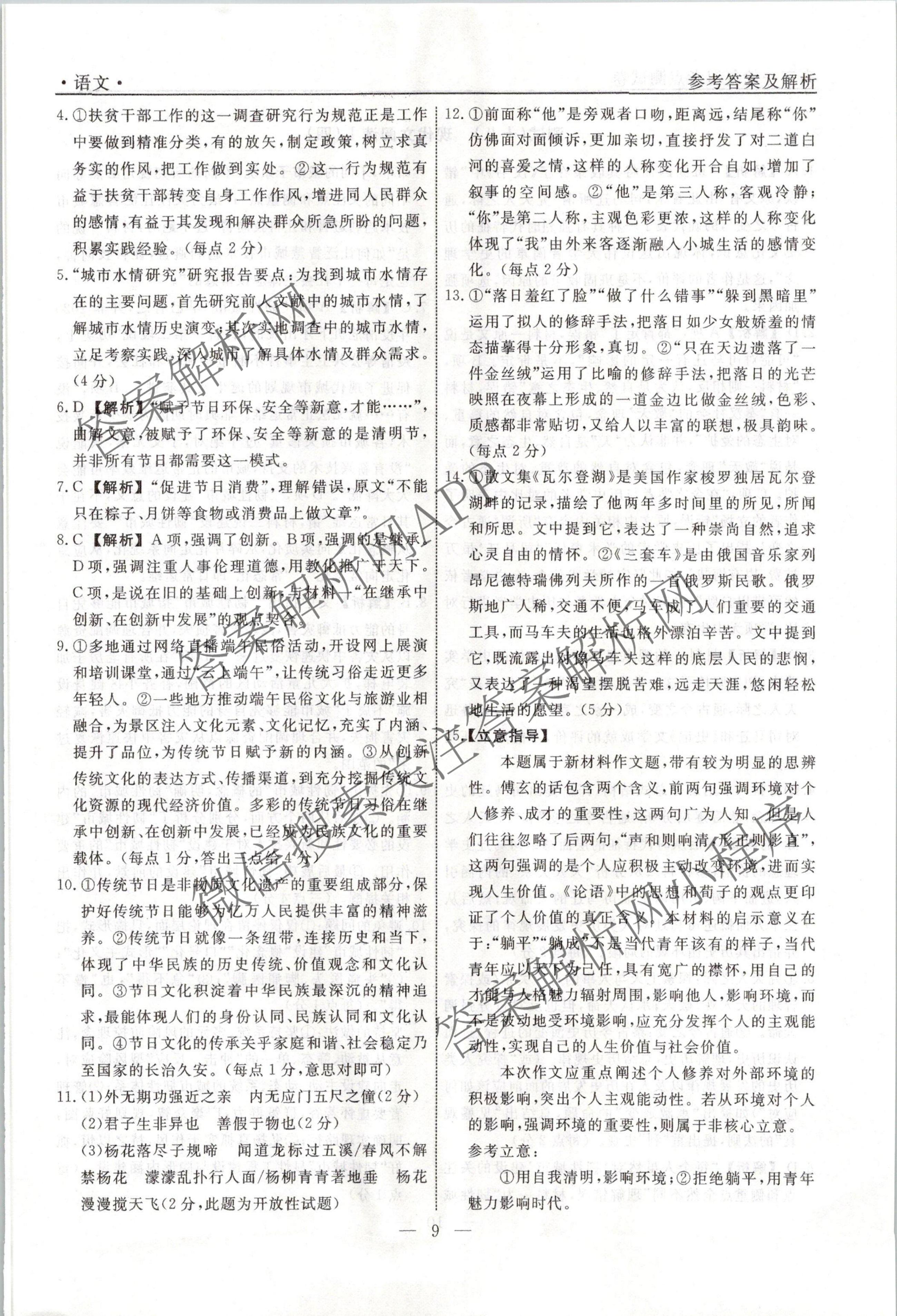 衡水名师卷2023-2024学年度高三一轮复习考点测试卷语文(40分钟实心菱形)(十七)17答案