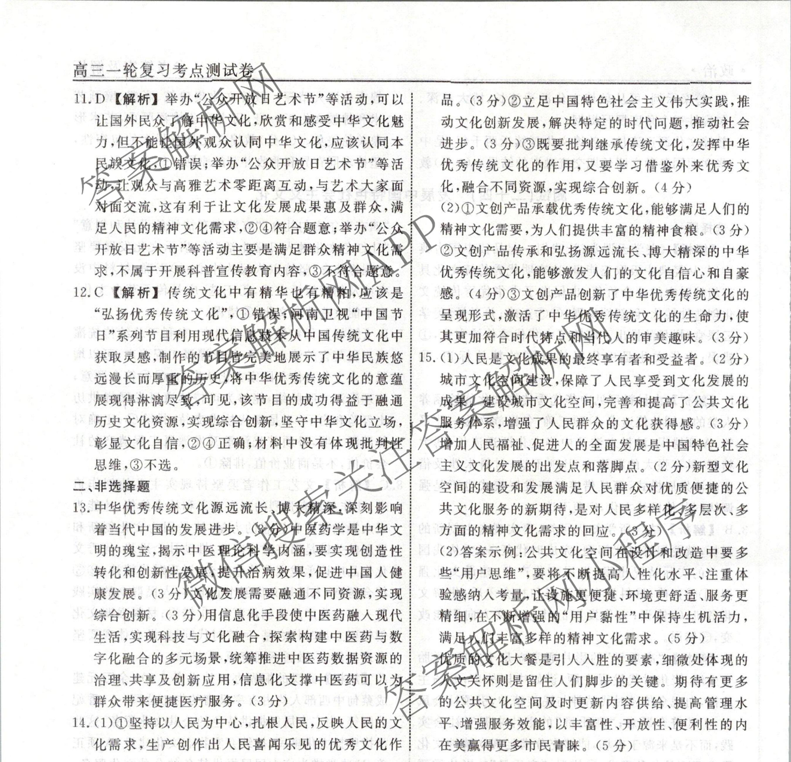 衡水名师卷2023-2024学年度高三一轮复习考点测试卷政治(40分钟实心菱形)(二十四)24答案
