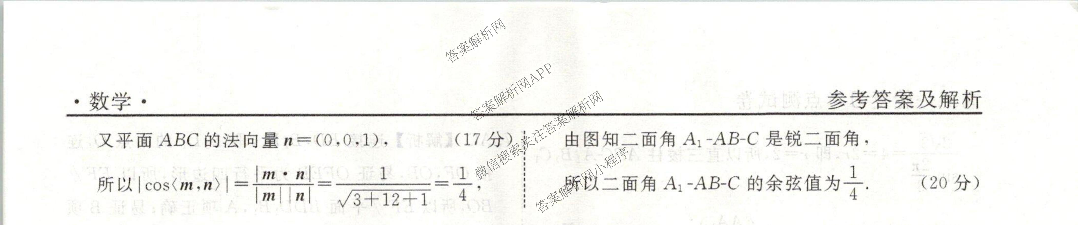 衡水名师卷2023-2024学年度高三一轮复习考点测试卷数学(40分钟实心菱形)(二十)20答案