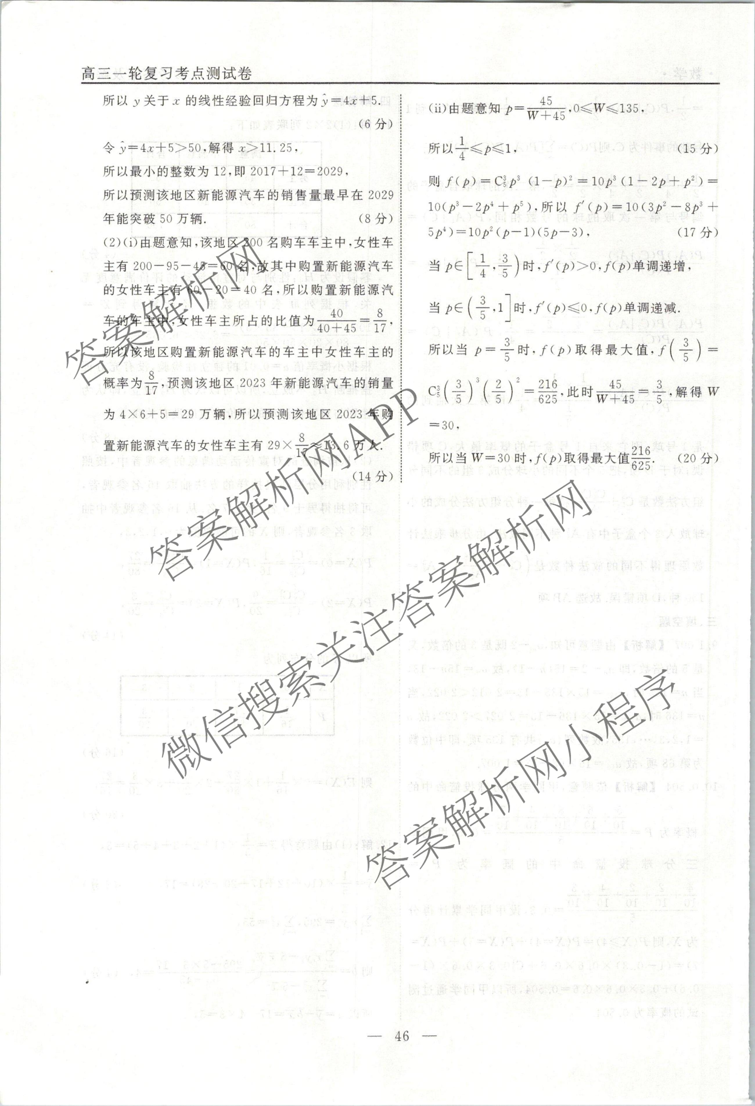 衡水名师卷2023-2024学年度高三一轮复习考点测试卷数学(40分钟实心菱形)(三十)30答案