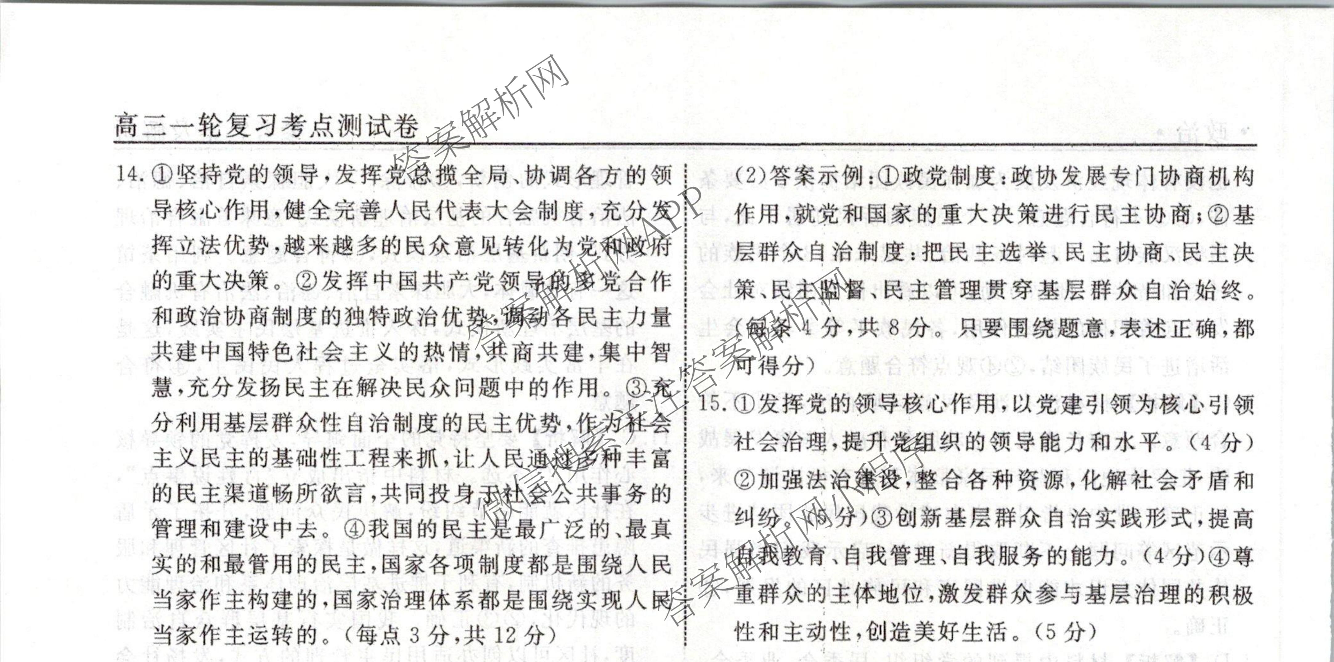 衡水名师卷2023-2024学年度高三一轮复习考点测试卷政治(40分钟实心菱形)(十二)12答案