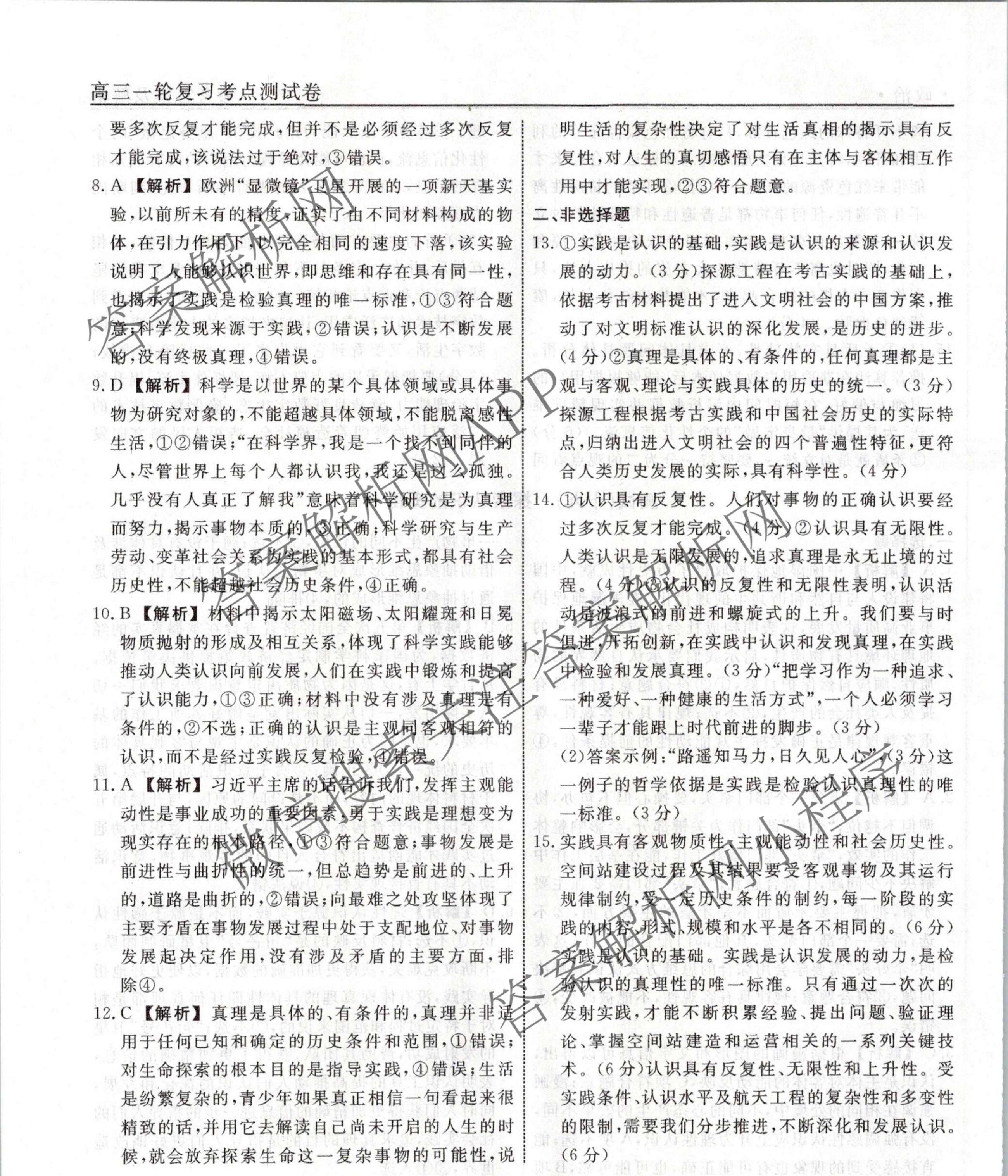 衡水名师卷2023-2024学年度高三一轮复习考点测试卷政治(40分钟实心菱形)(十九)19答案