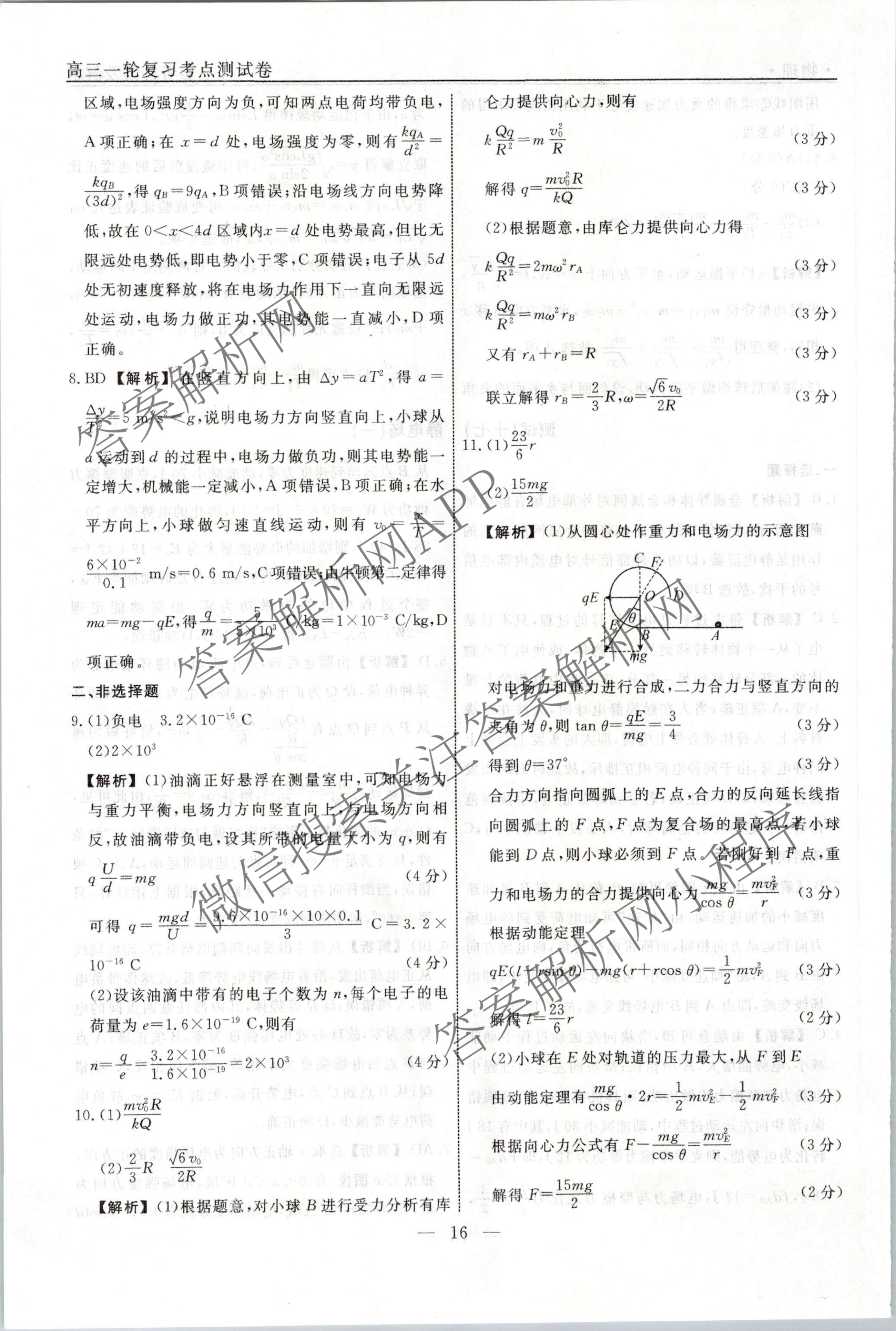 衡水名师卷2023-2024学年度高三一轮复习考点测试卷物理(40分钟实心菱形)(十七)17答案