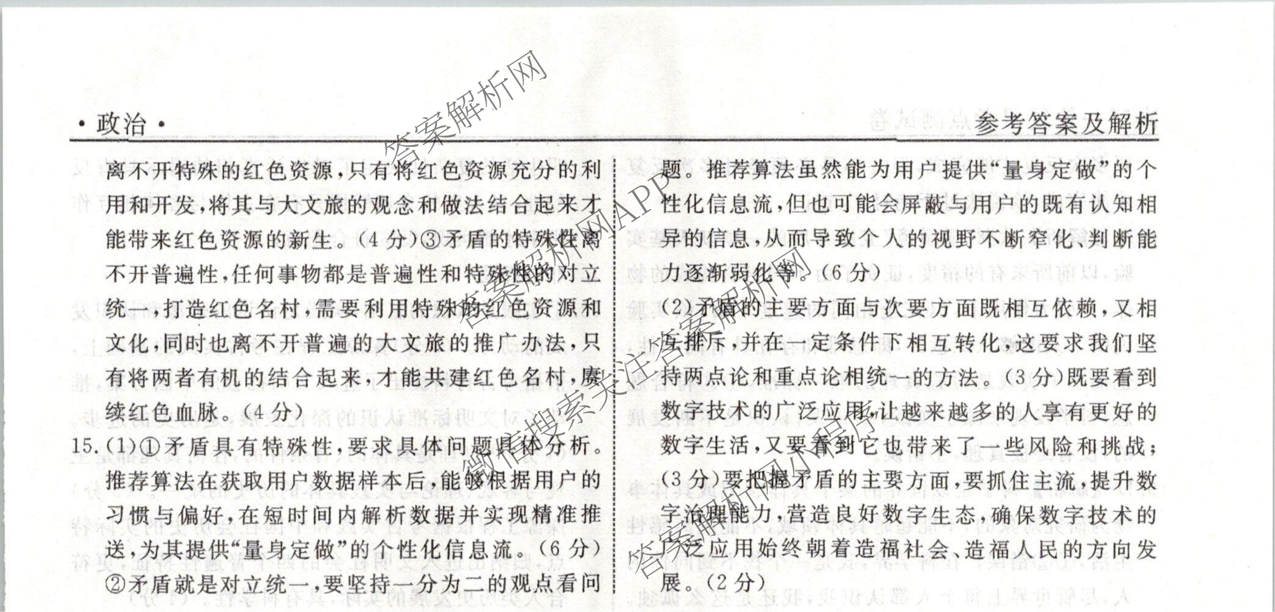 衡水名师卷2023-2024学年度高三一轮复习考点测试卷政治(40分钟实心菱形)(十八)18答案