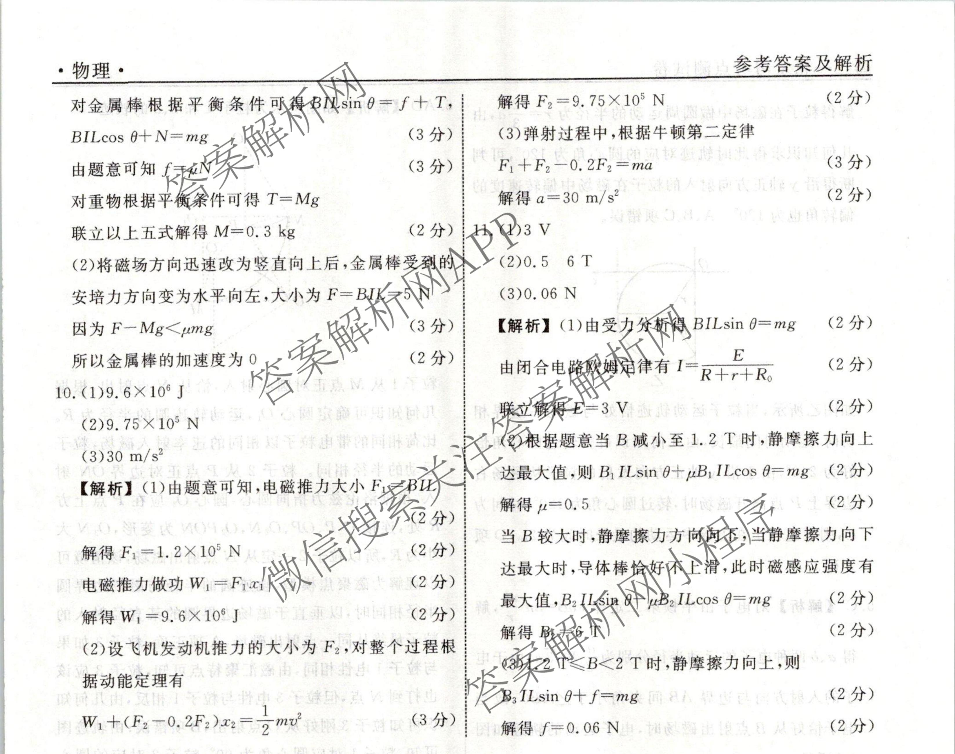 衡水名师卷2023-2024学年度高三一轮复习考点测试卷物理(40分钟实心菱形)(二十二)22答案