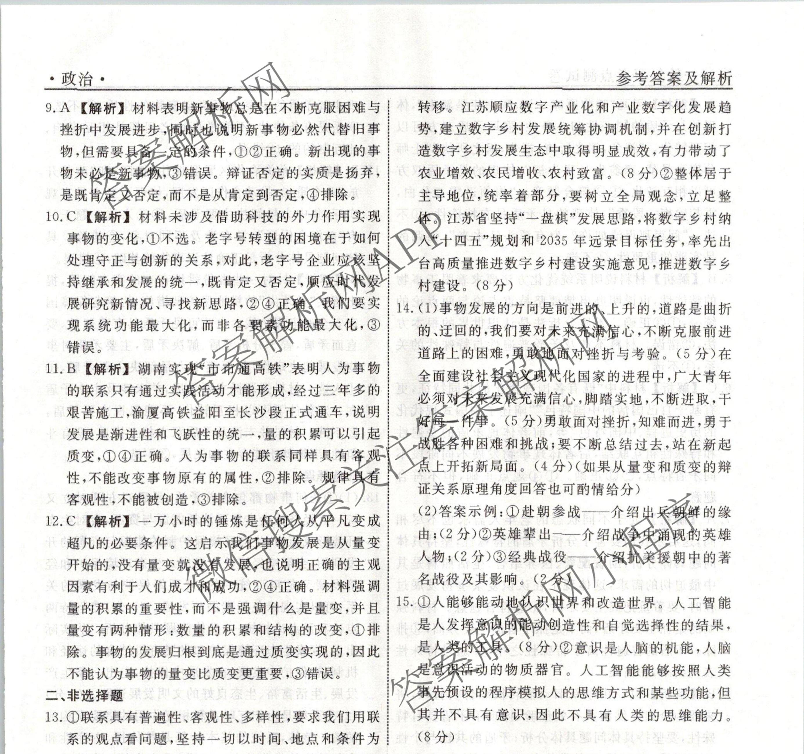 衡水名师卷2023-2024学年度高三一轮复习考点测试卷政治(40分钟实心菱形)(十七)17答案