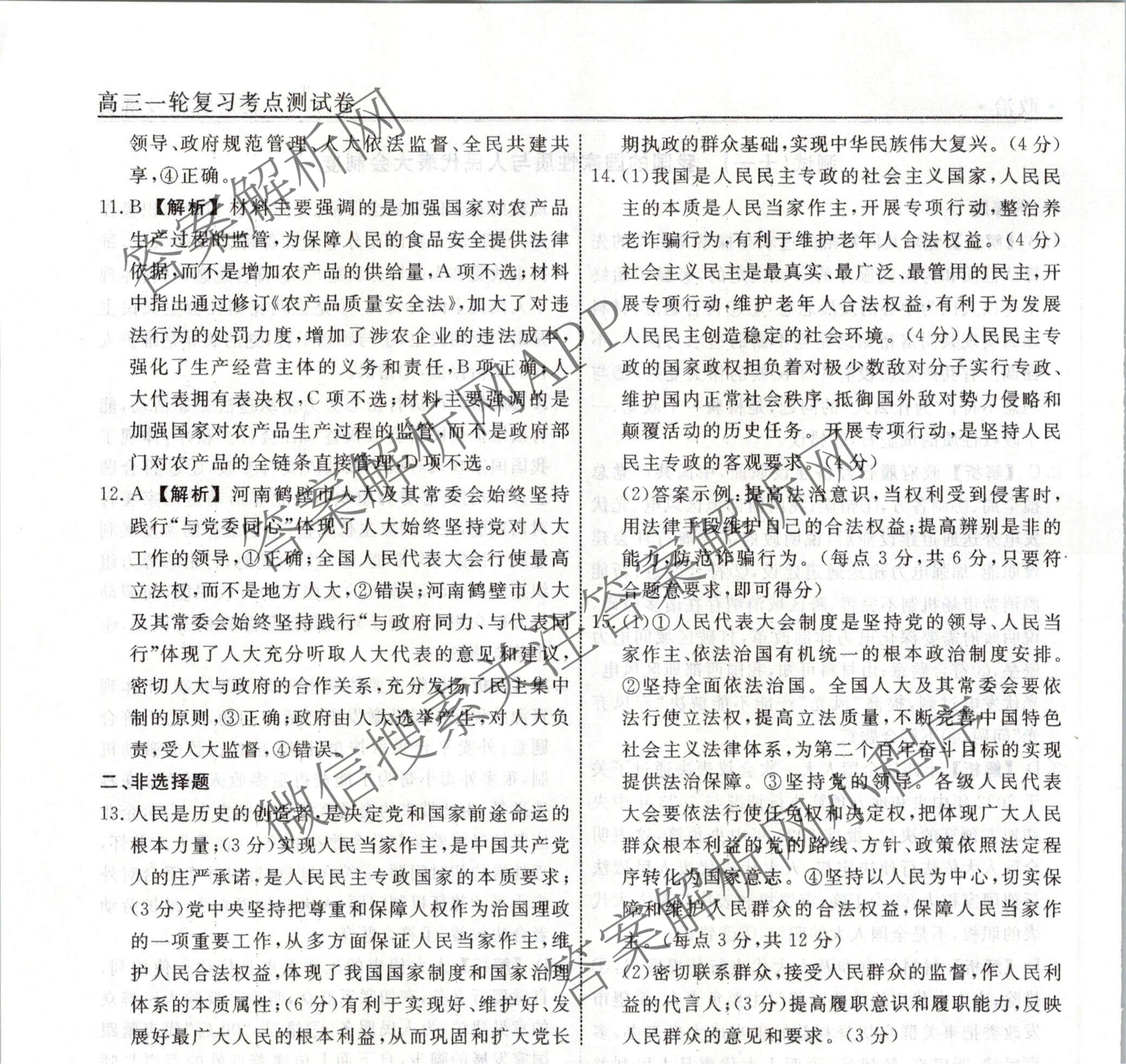 衡水名师卷2023-2024学年度高三一轮复习考点测试卷政治(40分钟实心菱形)(十一)11答案