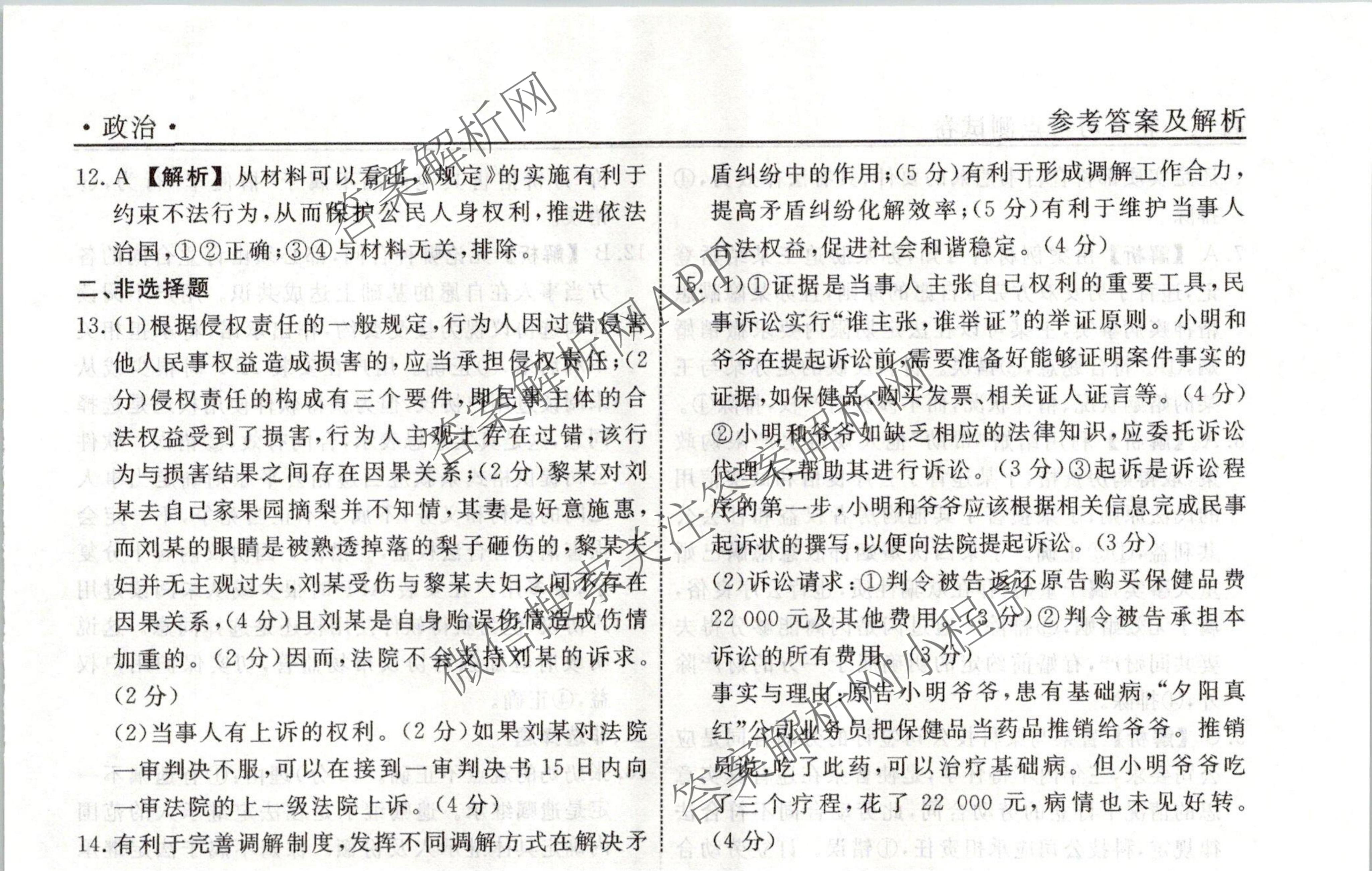 衡水名师卷2023-2024学年度高三一轮复习考点测试卷政治(40分钟实心菱形)(二十七)27答案