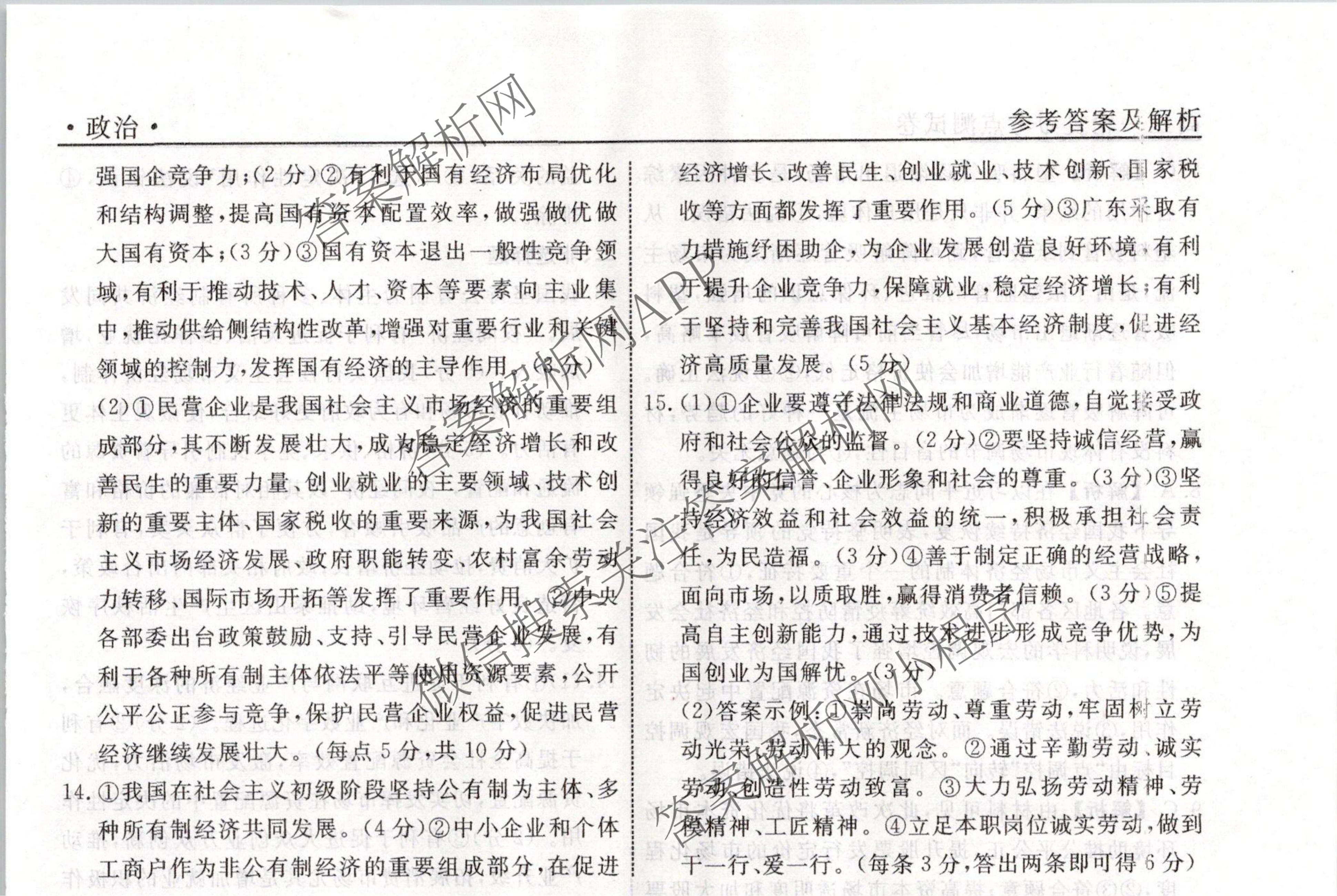 衡水名师卷2023-2024学年度高三一轮复习考点测试卷政治(40分钟实心菱形)(五)5答案