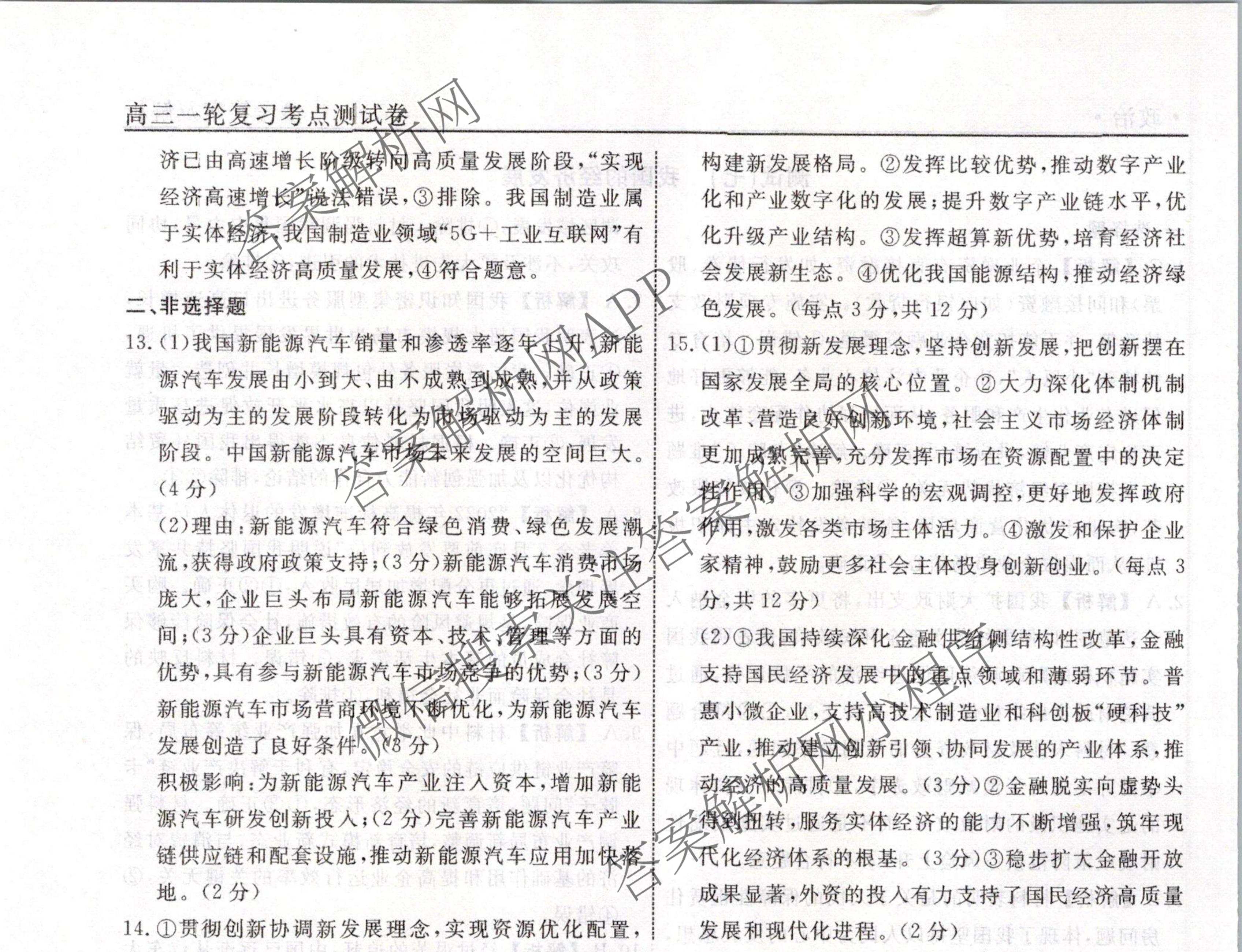 衡水名师卷2023-2024学年度高三一轮复习考点测试卷政治(40分钟实心菱形)(七)7答案