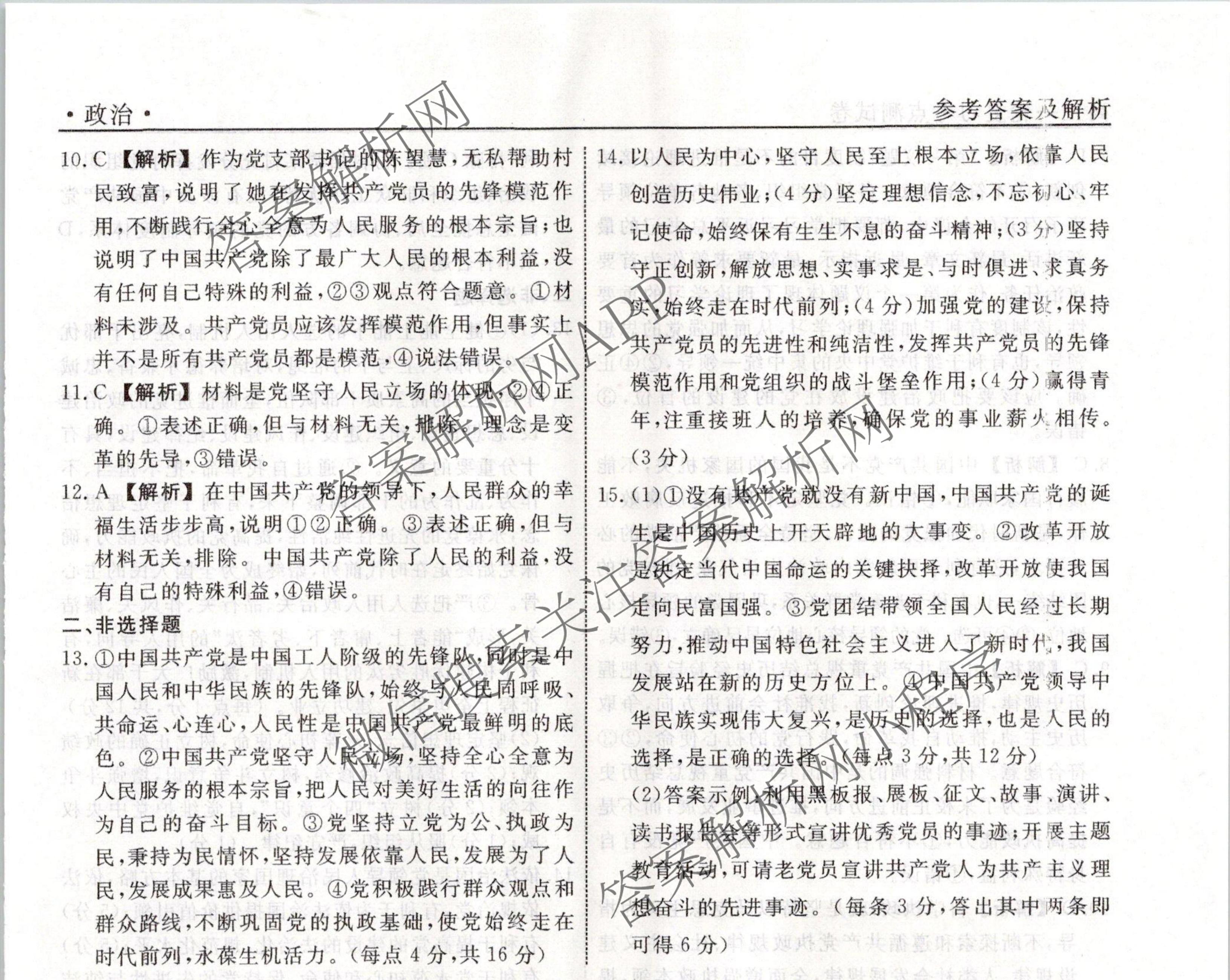 衡水名师卷2023-2024学年度高三一轮复习考点测试卷政治(40分钟实心菱形)(九)9答案