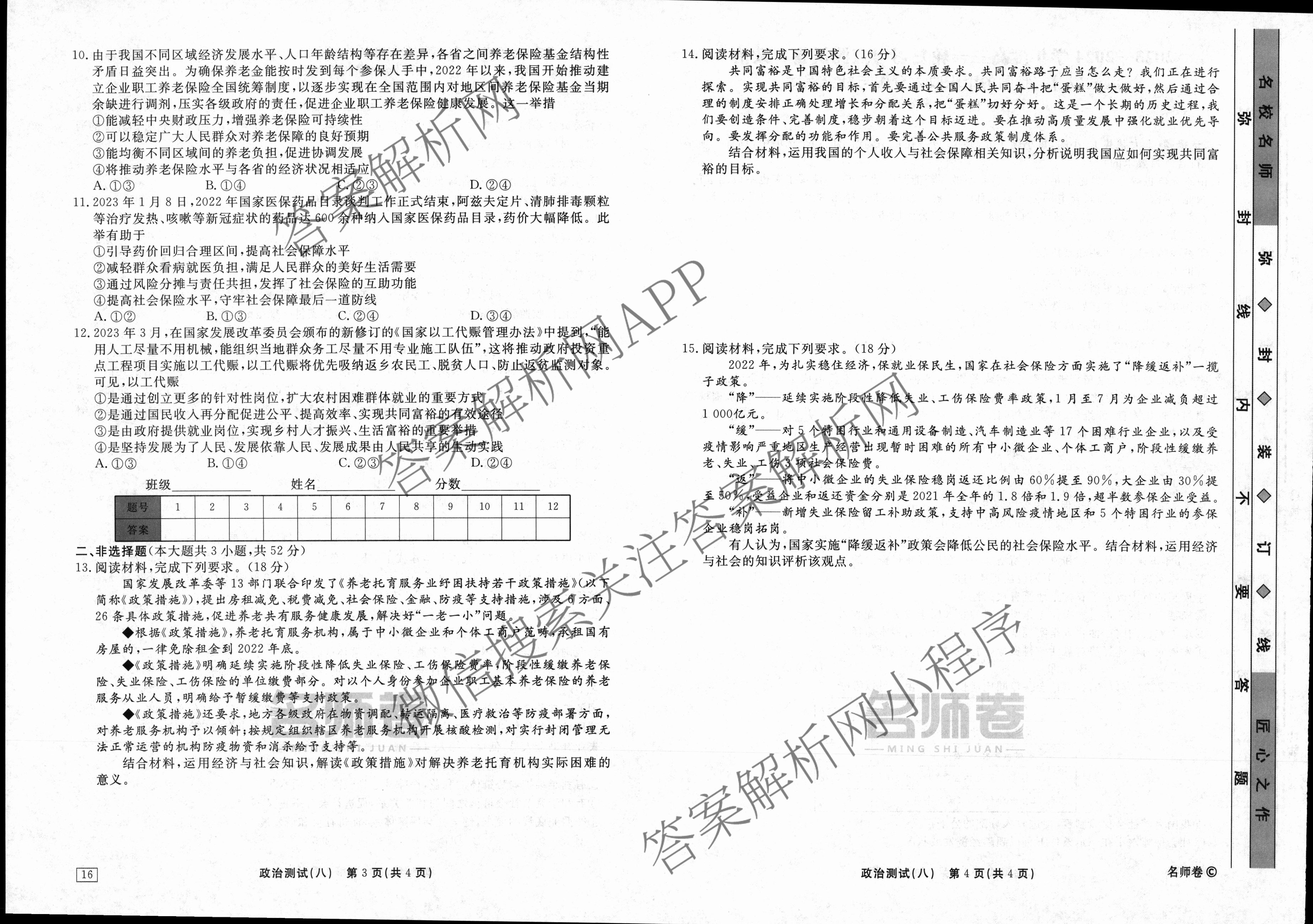 衡水名师卷2023-2024学年度高三一轮复习考点测试卷政治(40分钟实心菱形)(八)8试题