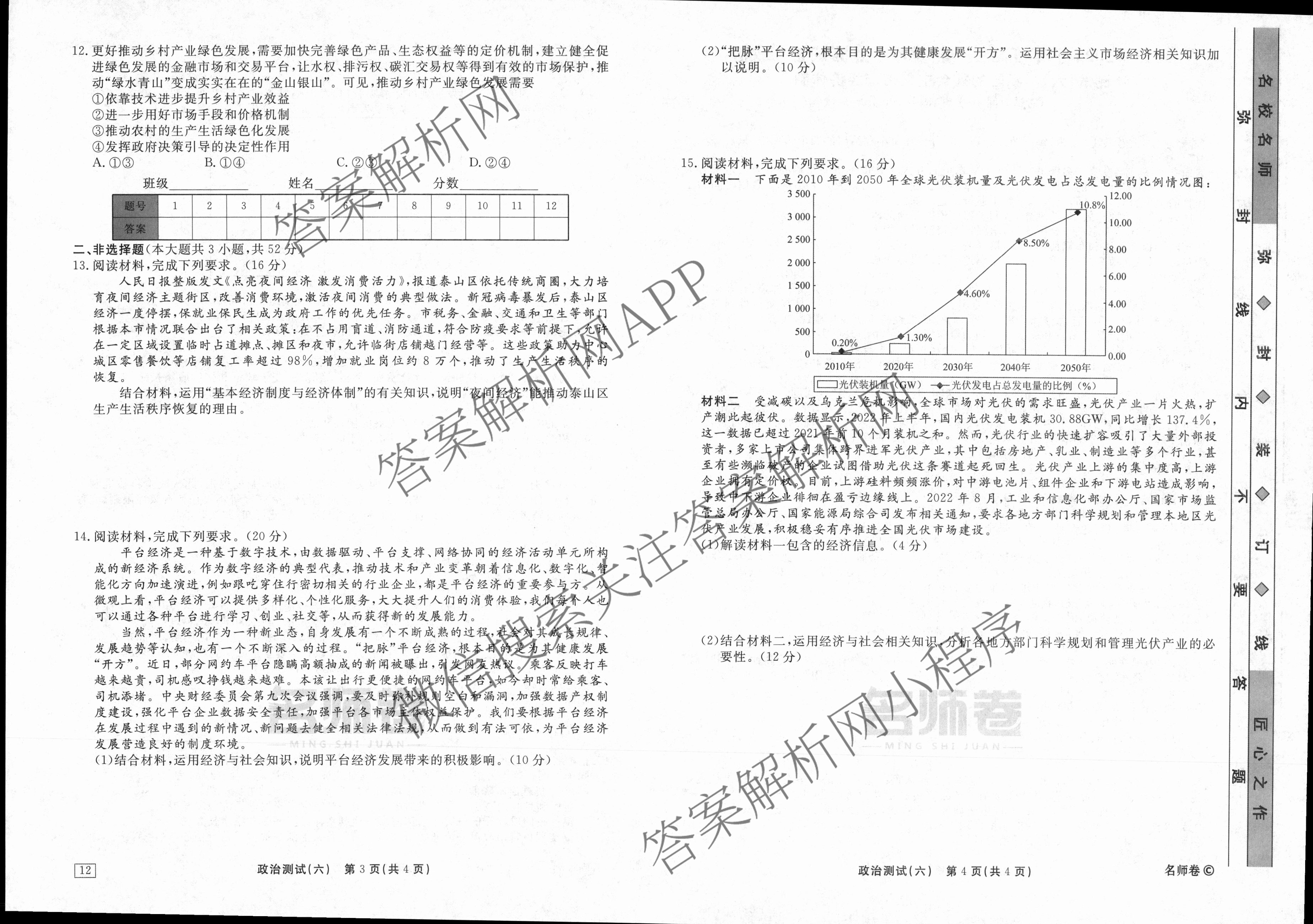 衡水名师卷2023-2024学年度高三一轮复习考点测试卷政治(40分钟实心菱形)(六)6试题