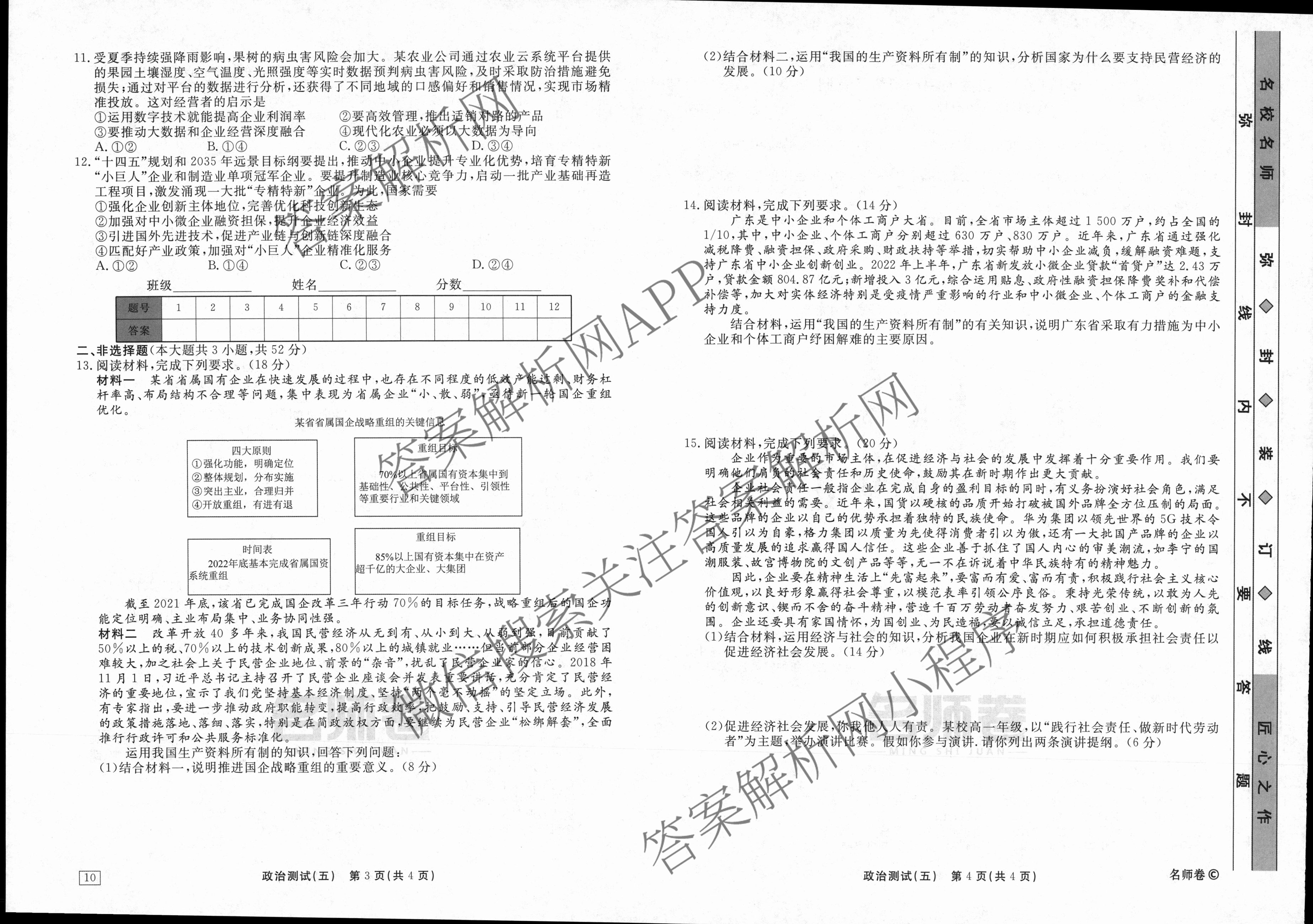 衡水名师卷2023-2024学年度高三一轮复习考点测试卷政治(40分钟实心菱形)(五)5试题