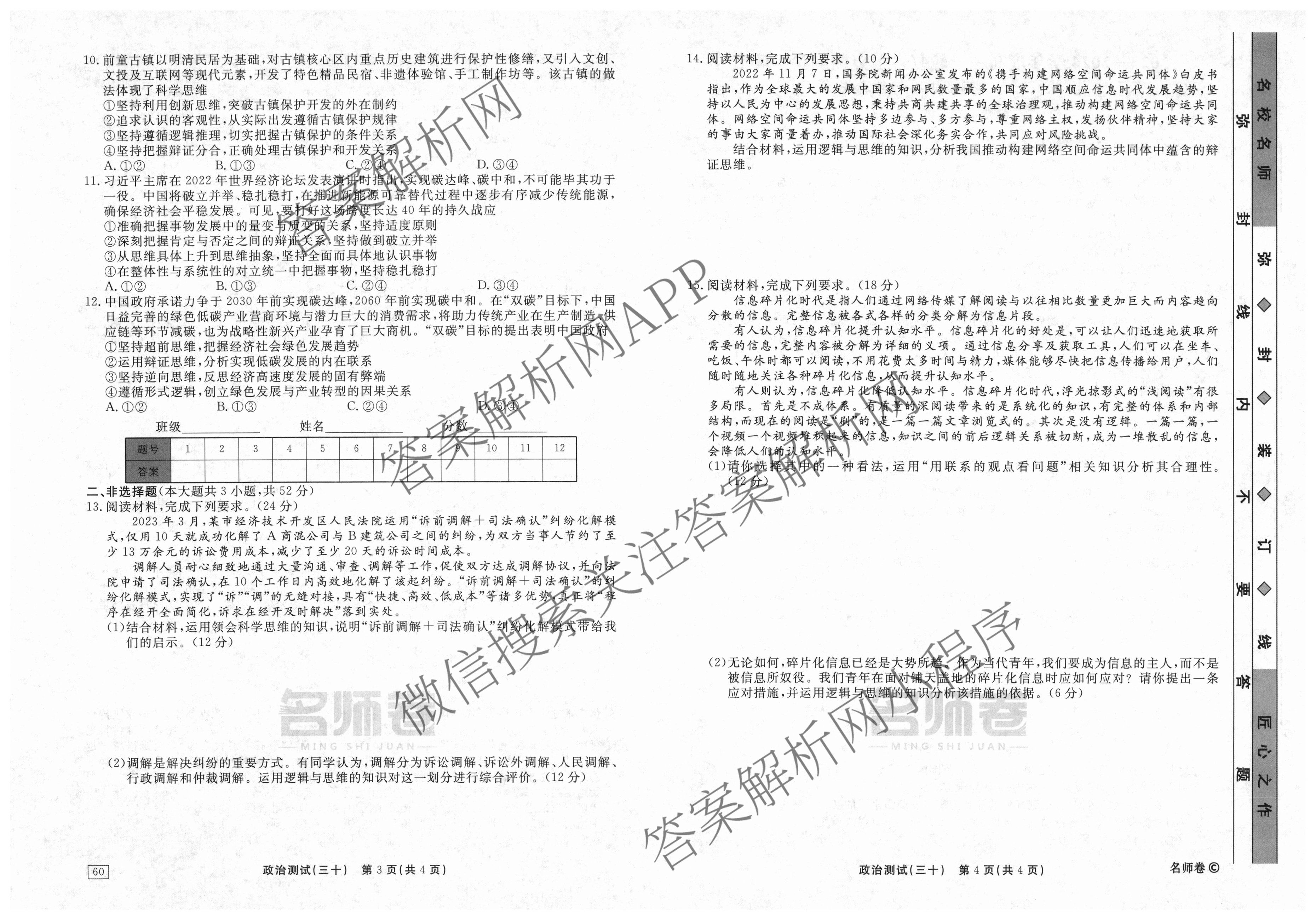 衡水名师卷2023-2024学年度高三一轮复习考点测试卷政治(40分钟实心菱形)(三十)30试题