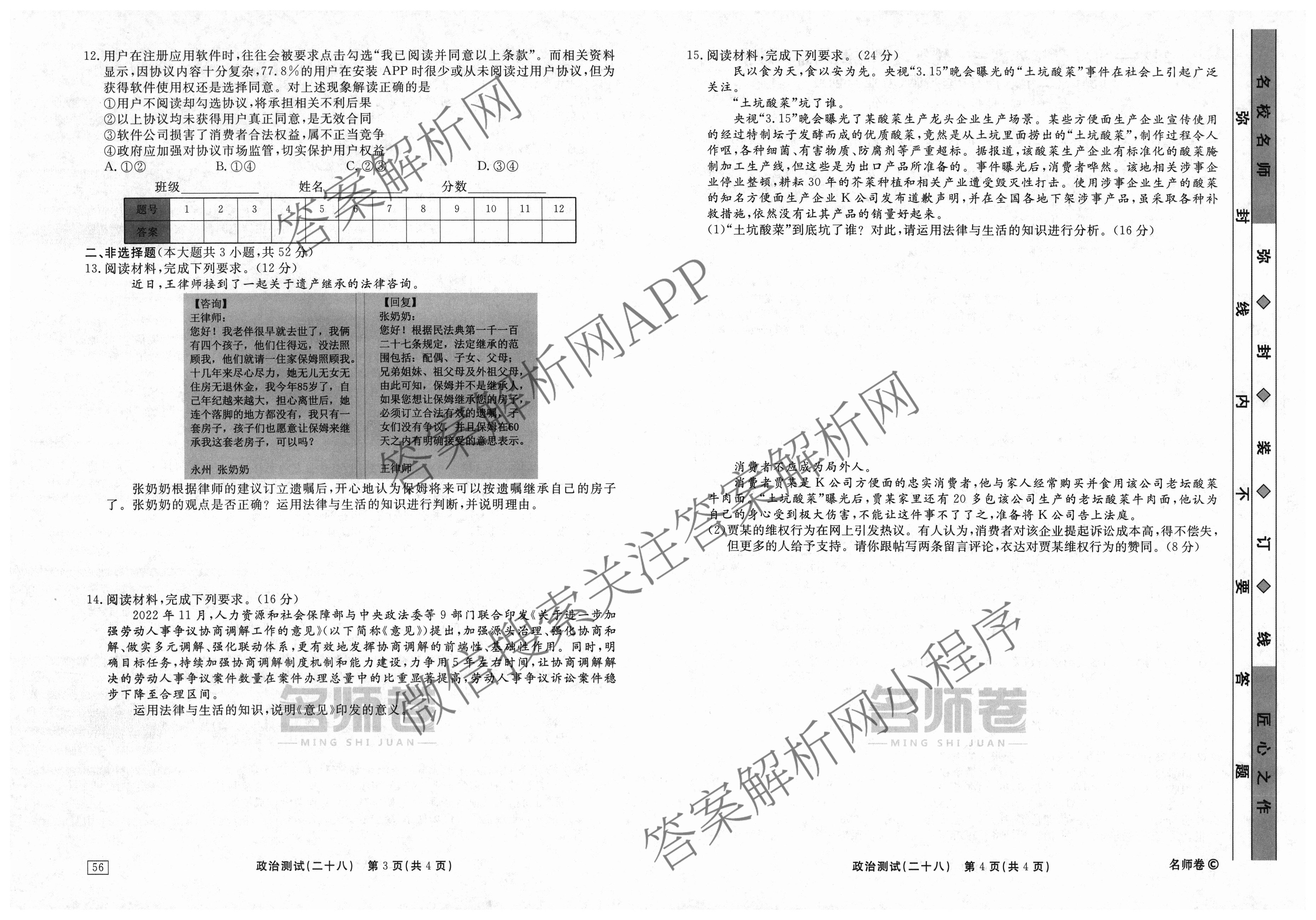 衡水名师卷2023-2024学年度高三一轮复习考点测试卷政治(40分钟实心菱形)(二十八)28试题