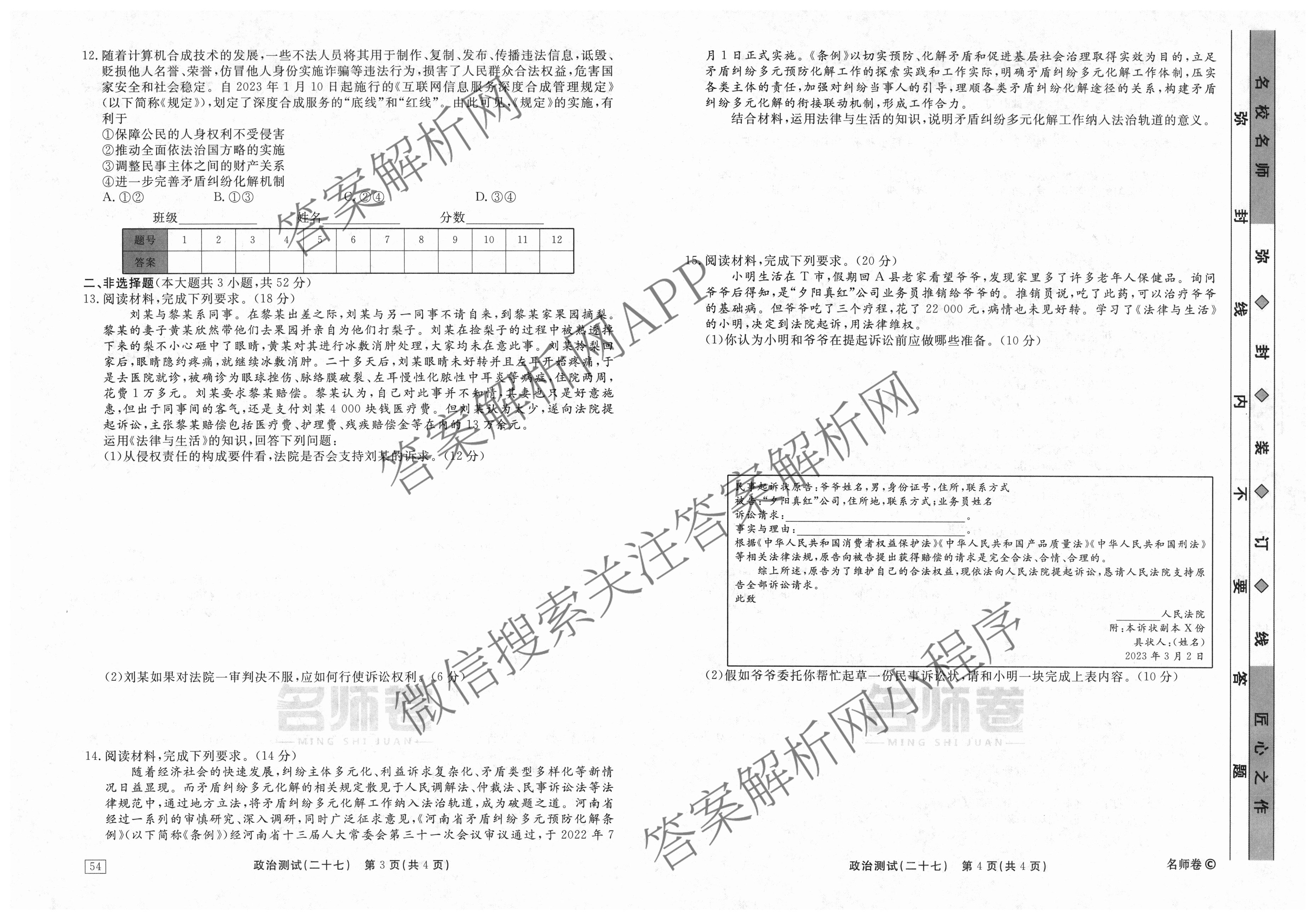 衡水名师卷·2023-2024学年度高三一轮复习考点测试卷·政治(40分钟·实心菱形)(二十七)27试题,目前分科卷答案网已经汇总了衡水名师卷·2023-2024学年度高三一轮复习考点测试卷·政治(40分钟·实心菱形)(二十七)27试题的各科答案和试卷,获取更多衡水名师卷答案解析,请在关注本站。