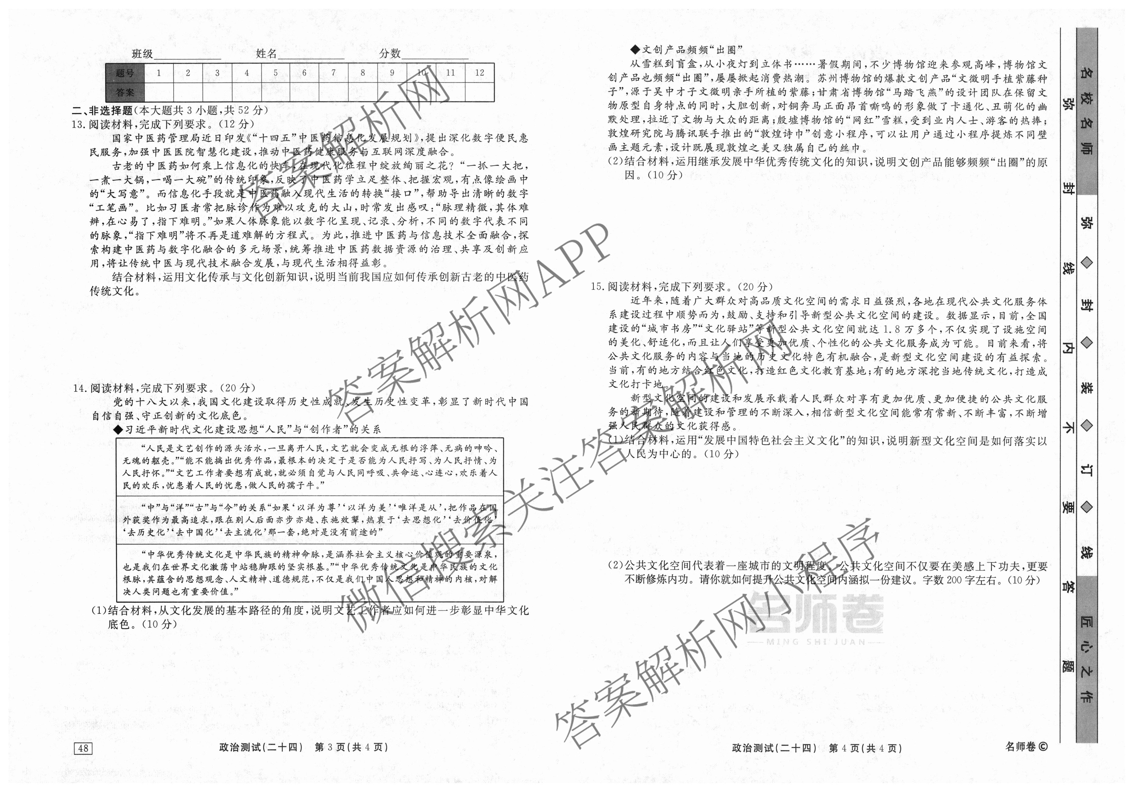 衡水名师卷2023-2024学年度高三一轮复习考点测试卷政治(40分钟实心菱形)(二十四)24试题