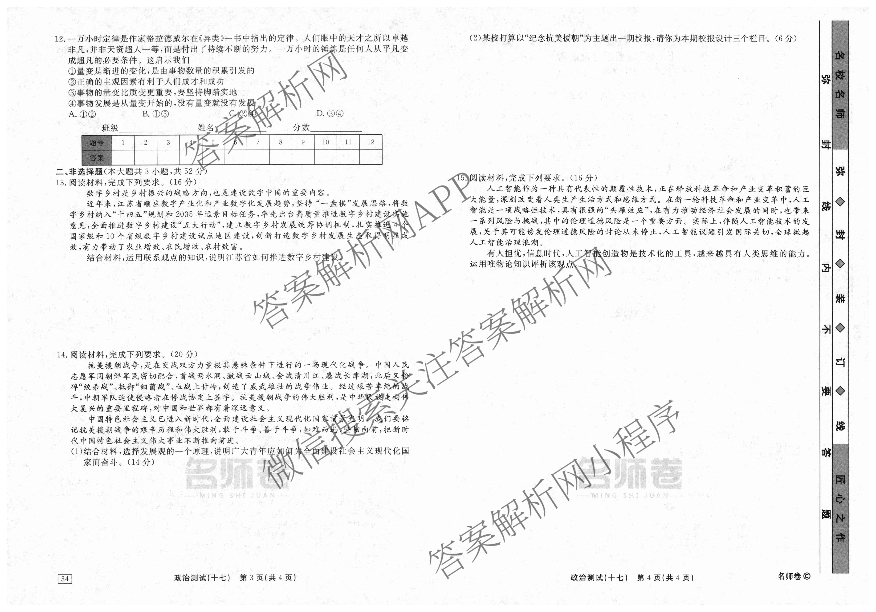 衡水名师卷2023-2024学年度高三一轮复习考点测试卷政治(40分钟实心菱形)(十七)17试题