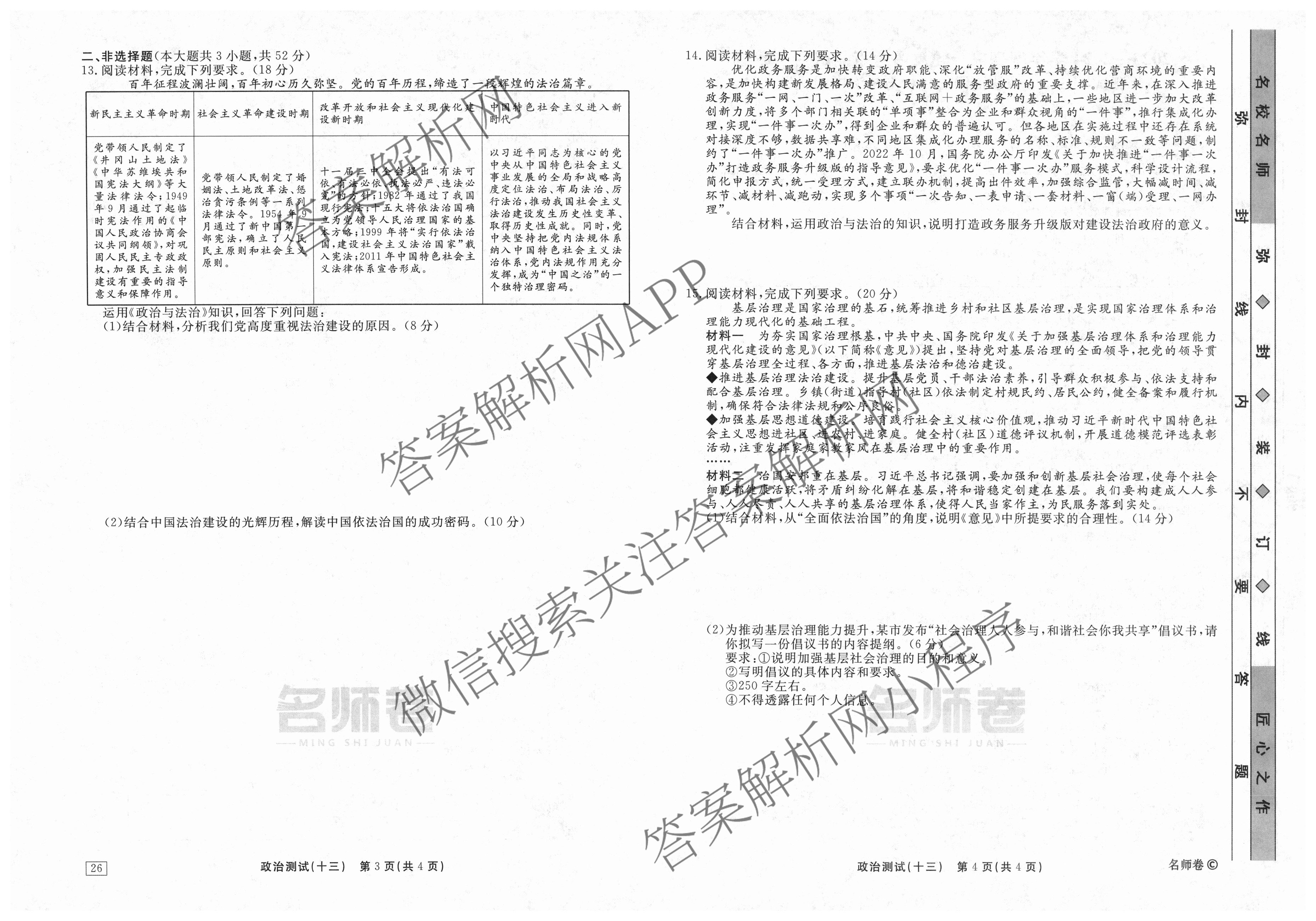 衡水名师卷2023-2024学年度高三一轮复习考点测试卷政治(40分钟实心菱形)(十三)13试题