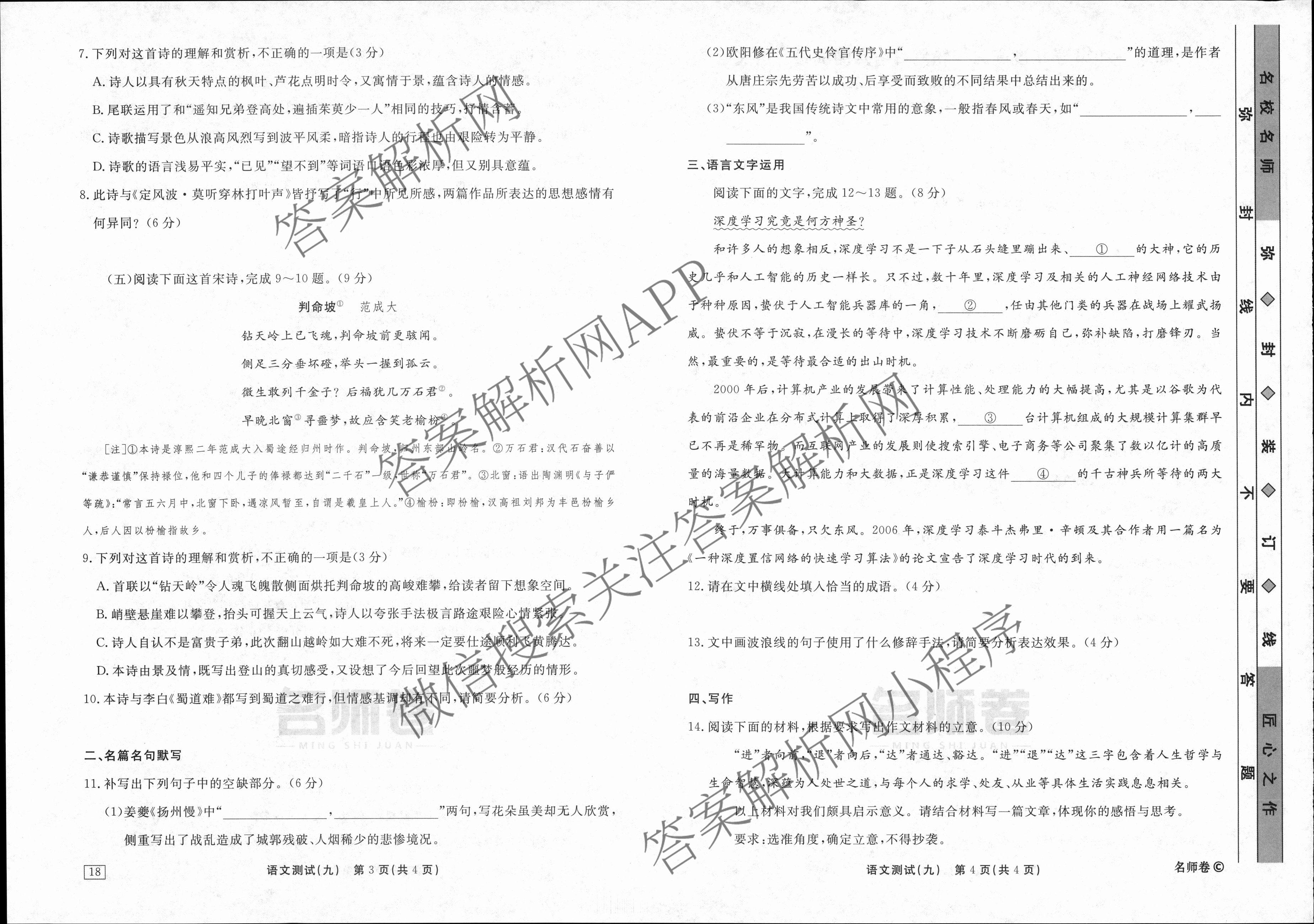 衡水名师卷·2023-2024学年度高三一轮复习考点测试卷·语文(40分钟·实心菱形)(九)9试题,目前分科卷答案网已经汇总了衡水名师卷·2023-2024学年度高三一轮复习考点测试卷·语文(40分钟·实心菱形)(九)9试题的各科答案和试卷,获取更多衡水名师卷答案解析,请在关注本站。