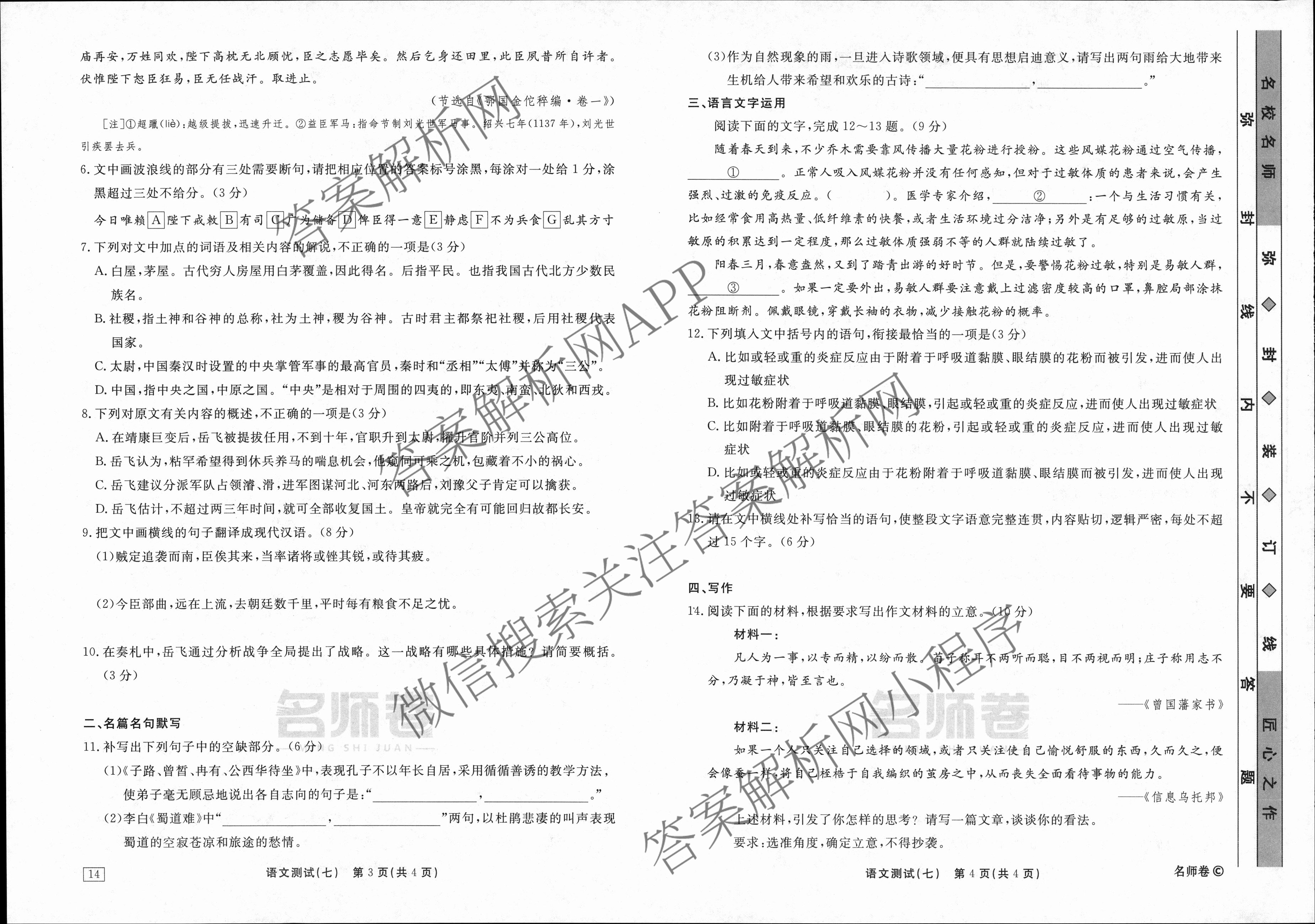 衡水名师卷·2023-2024学年度高三一轮复习考点测试卷·语文(40分钟·实心菱形)(七)7试题,目前分科卷答案网已经汇总了衡水名师卷·2023-2024学年度高三一轮复习考点测试卷·语文(40分钟·实心菱形)(七)7试题的各科答案和试卷,获取更多衡水名师卷答案解析,请在关注本站。