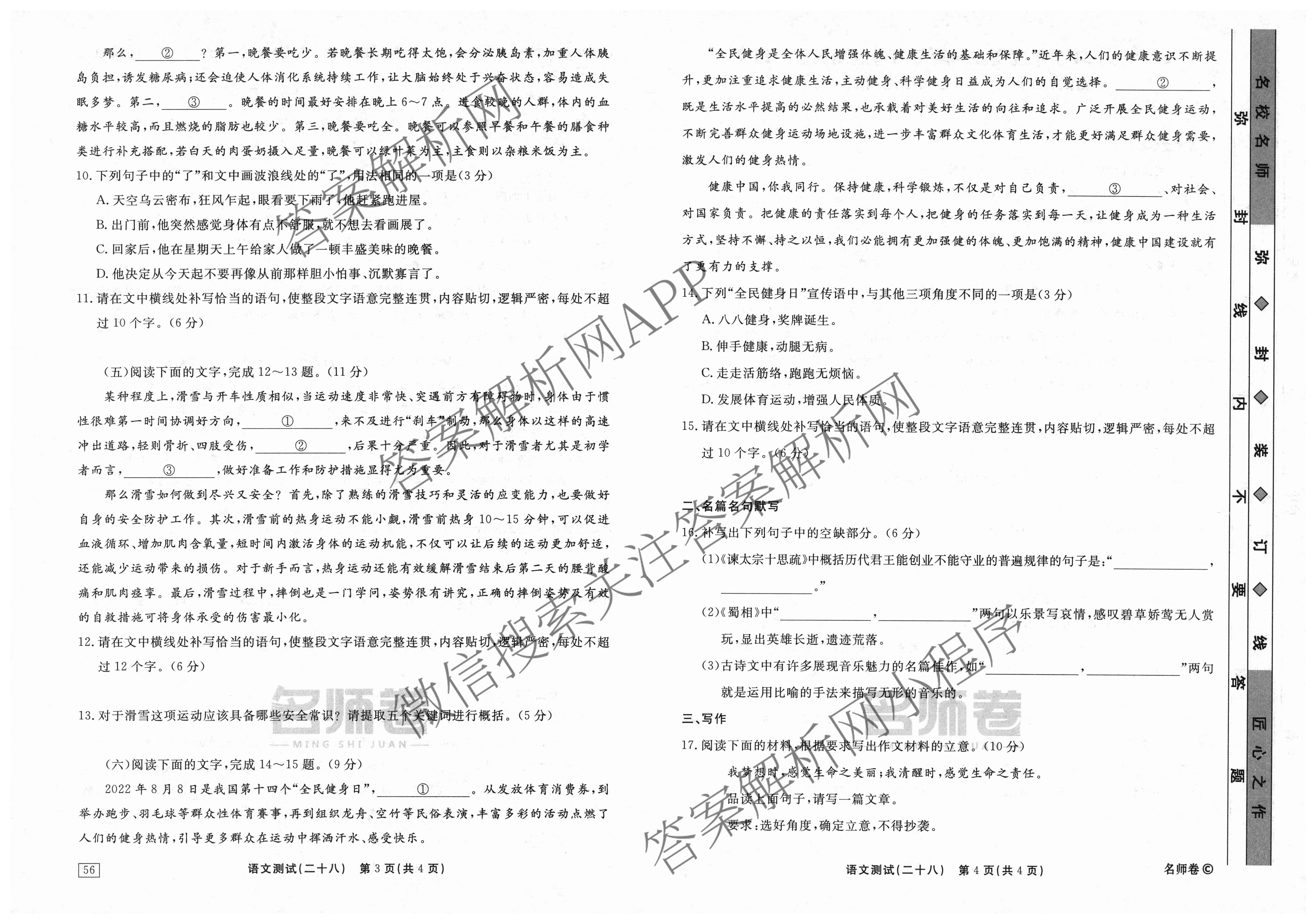衡水名师卷2023-2024学年度高三一轮复习考点测试卷语文(40分钟实心菱形)(二十八)28试题