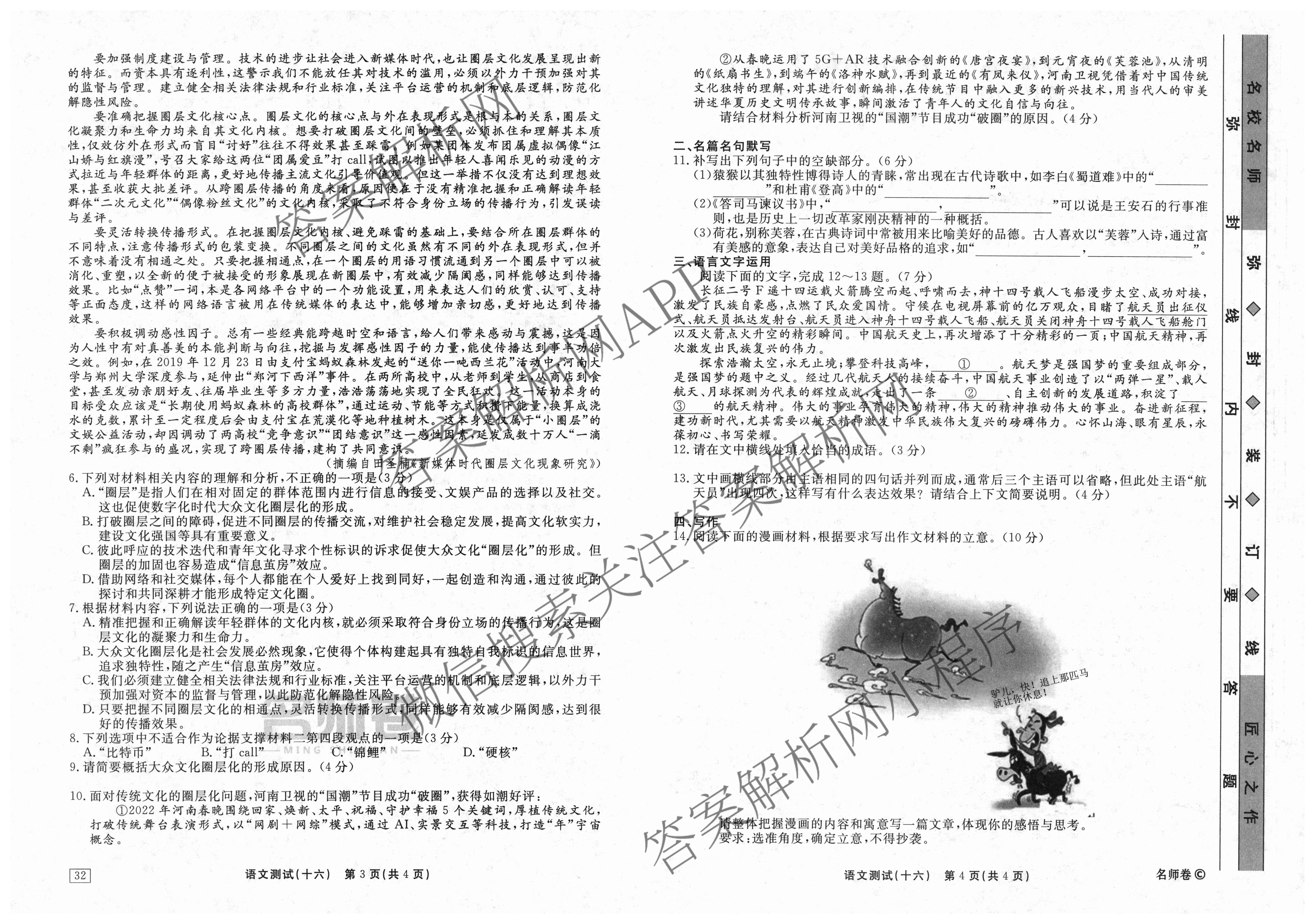 衡水名师卷2023-2024学年度高三一轮复习考点测试卷语文(40分钟实心菱形)(十六)16试题