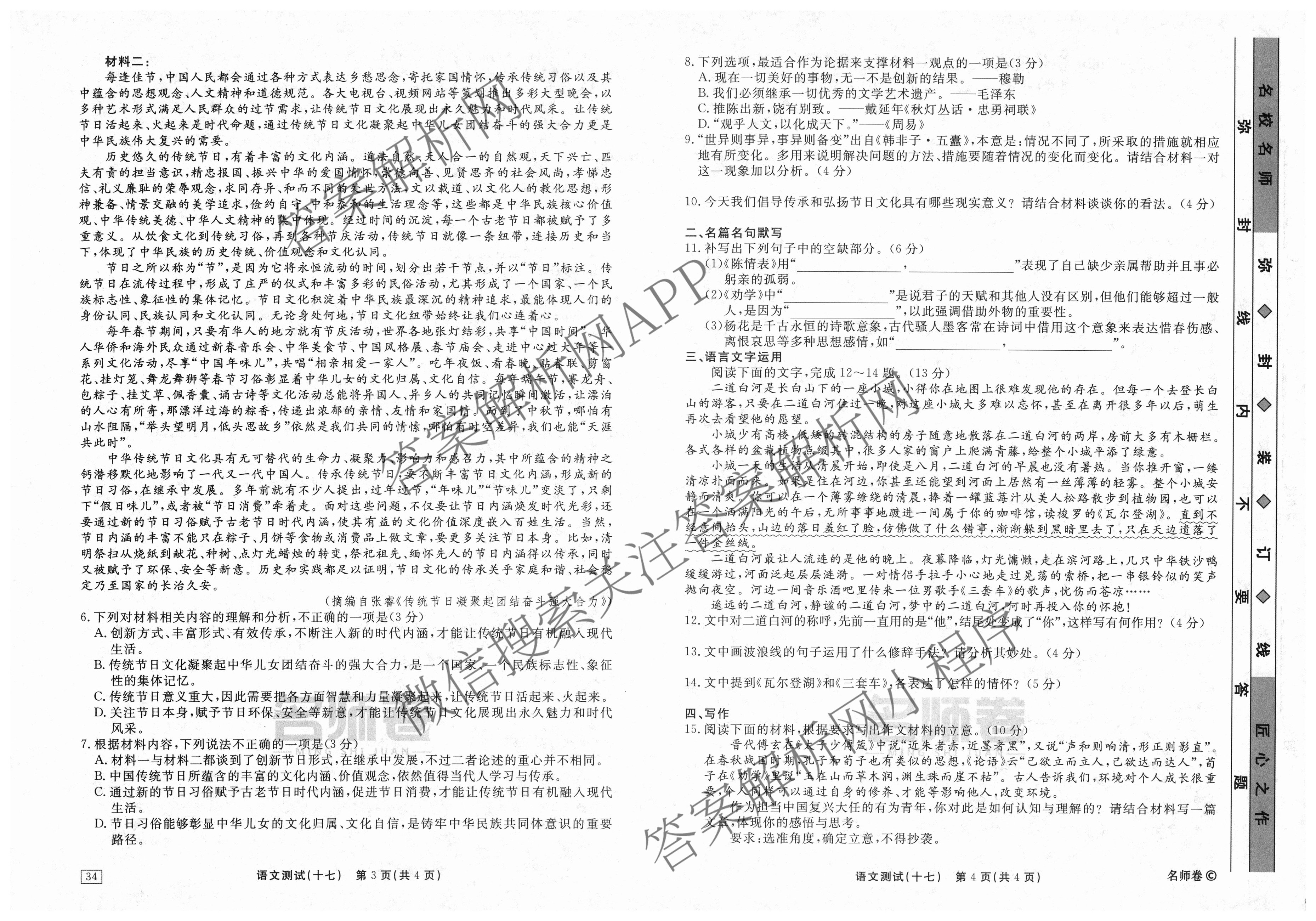 衡水名师卷2023-2024学年度高三一轮复习考点测试卷语文(40分钟实心菱形)(十七)17试题