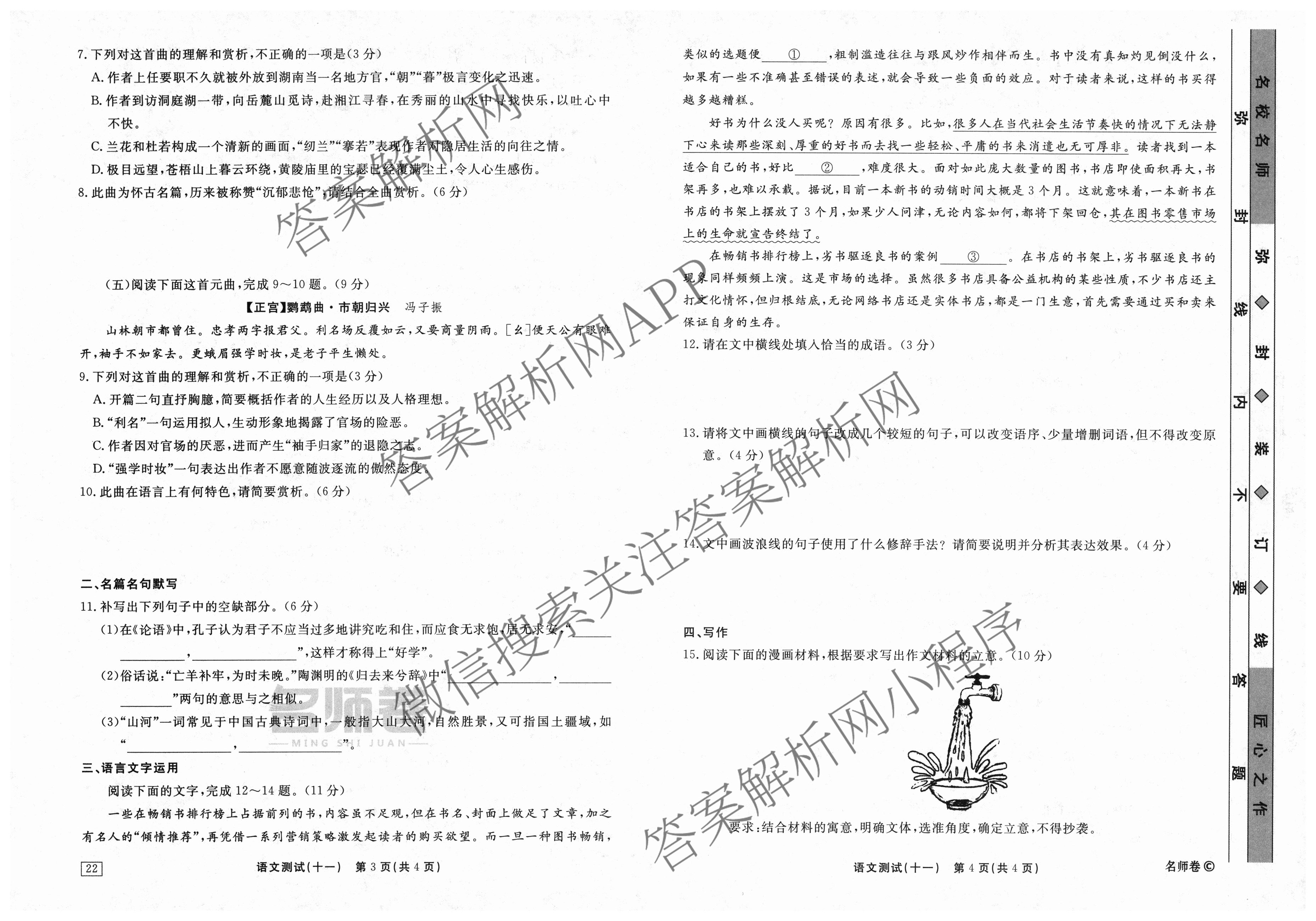 衡水名师卷2023-2024学年度高三一轮复习考点测试卷语文(40分钟实心菱形)(十一)11试题
