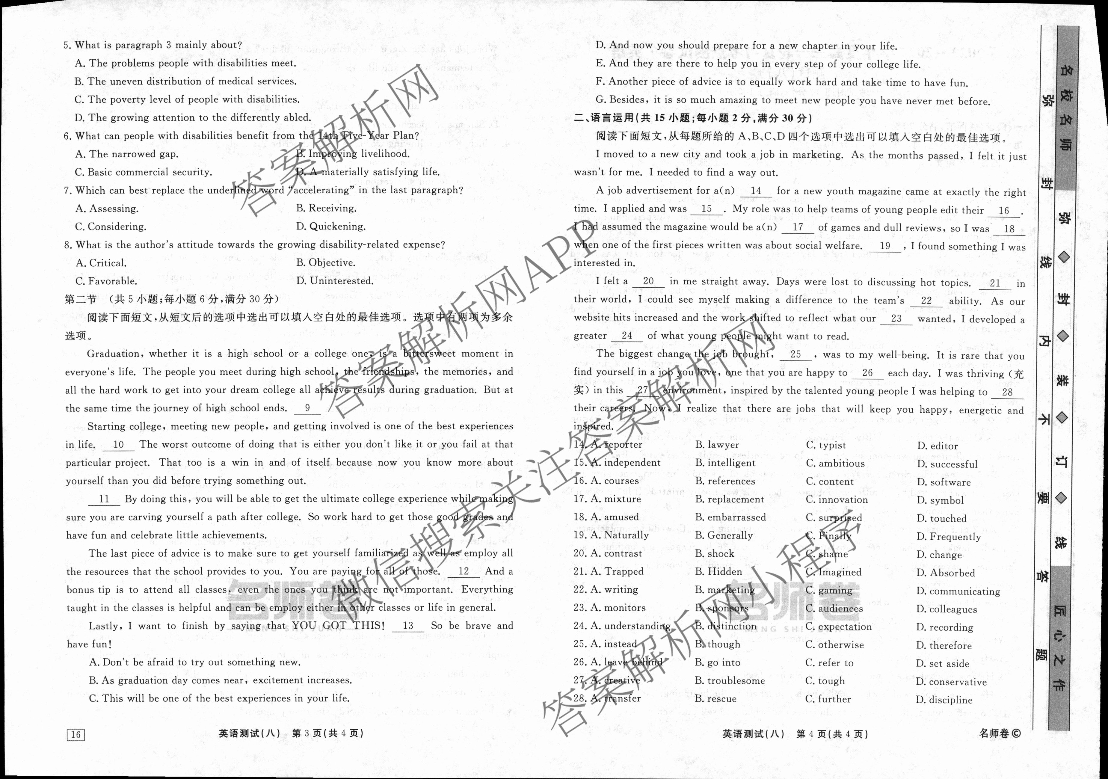 衡水名师卷2023-2024学年度高三一轮复习考点测试卷英语(40分钟实心菱形)(八)8试题