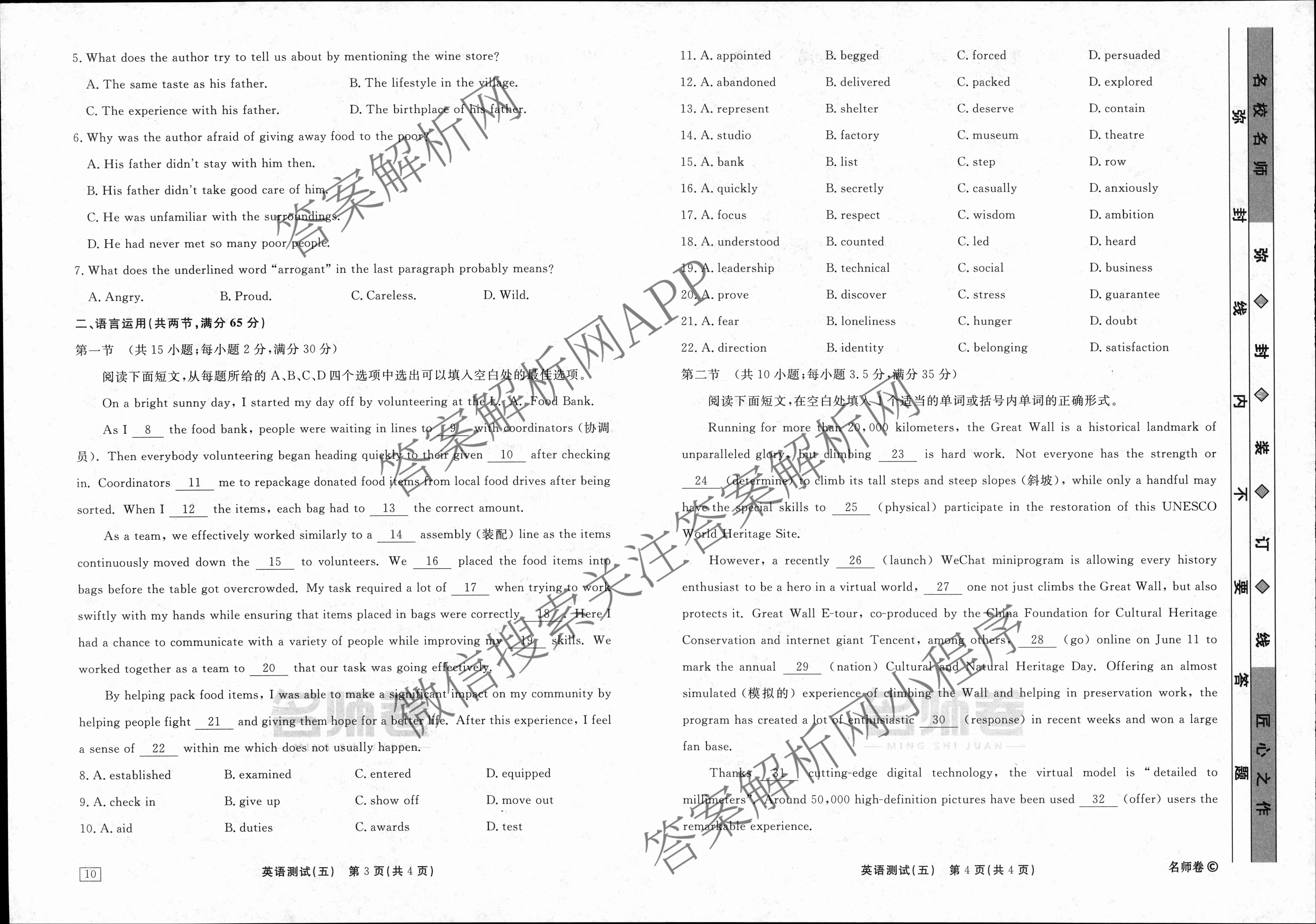 衡水名师卷2023-2024学年度高三一轮复习考点测试卷英语(40分钟实心菱形)(五)5试题