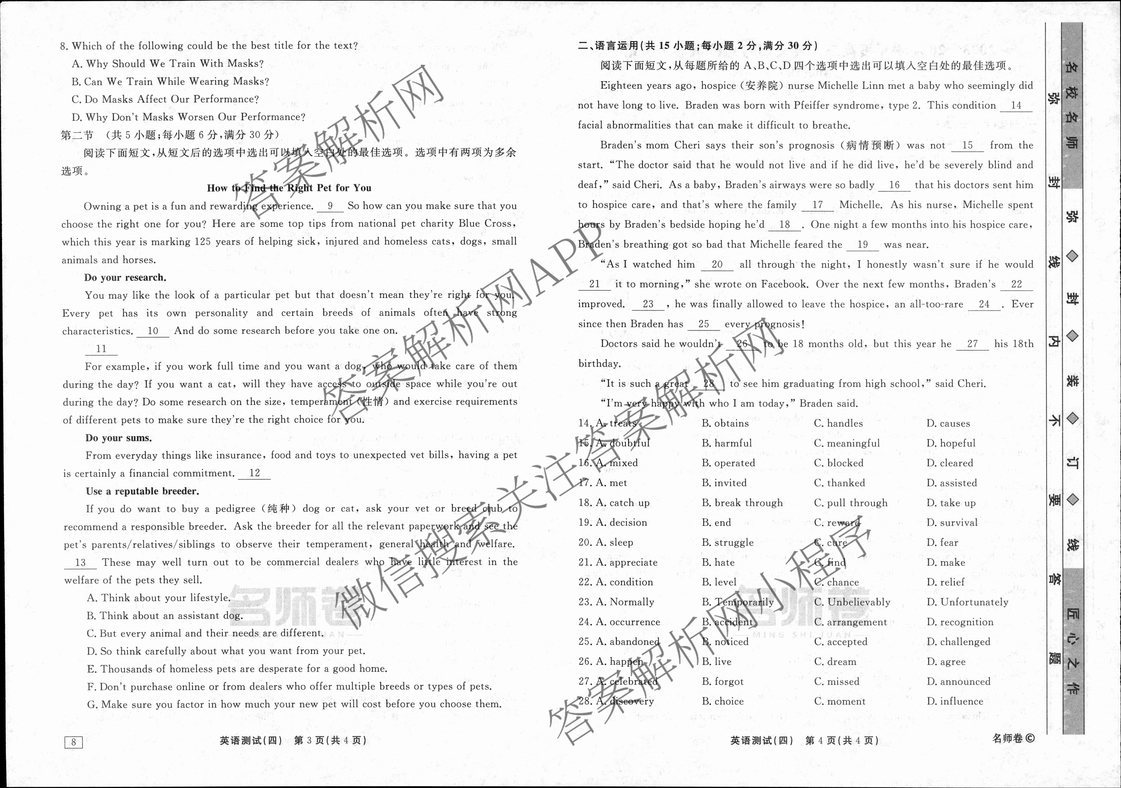 衡水名师卷2023-2024学年度高三一轮复习考点测试卷英语(40分钟实心菱形)(四)4试题