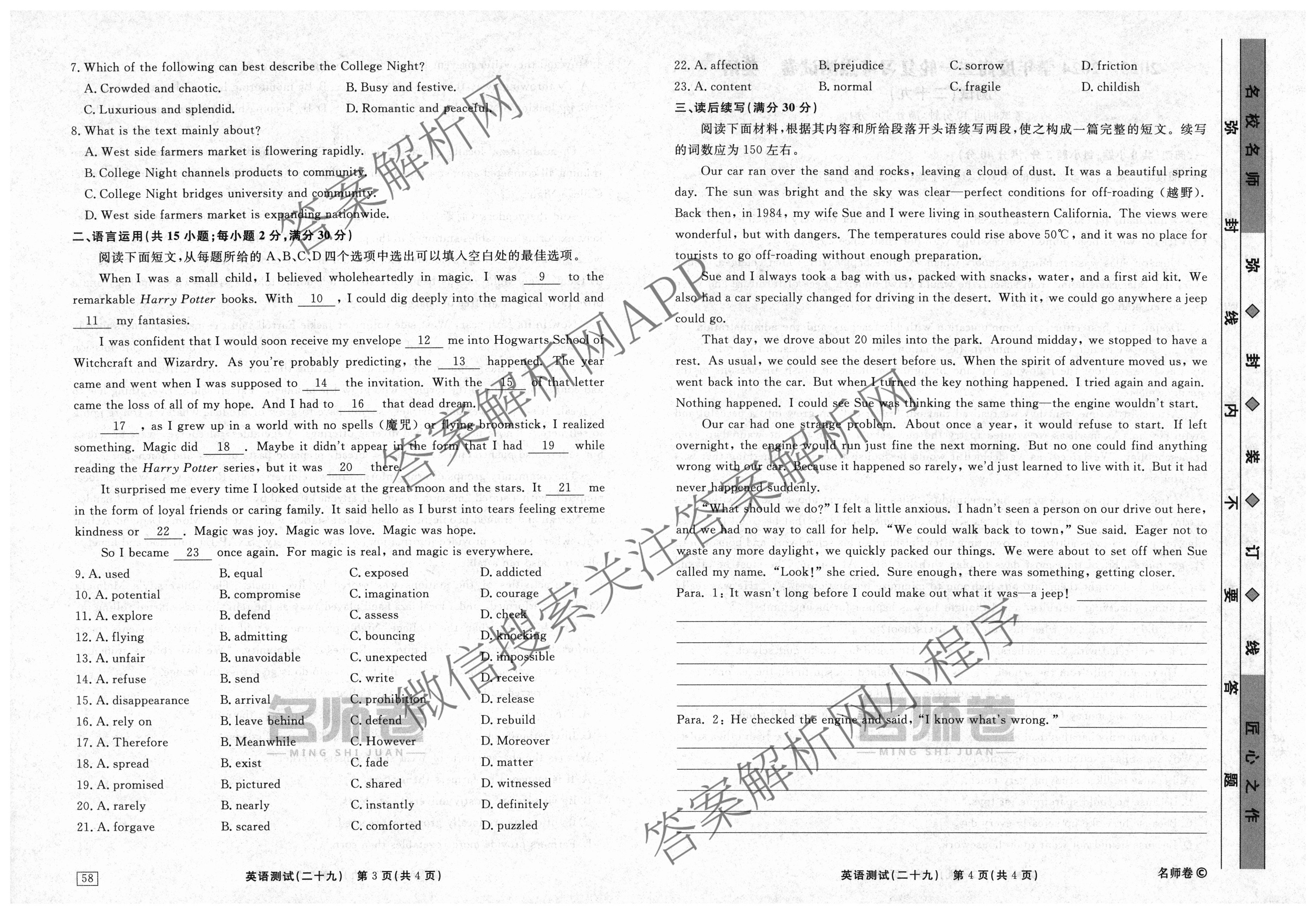 衡水名师卷2023-2024学年度高三一轮复习考点测试卷英语(40分钟实心菱形)(二十九)29试题