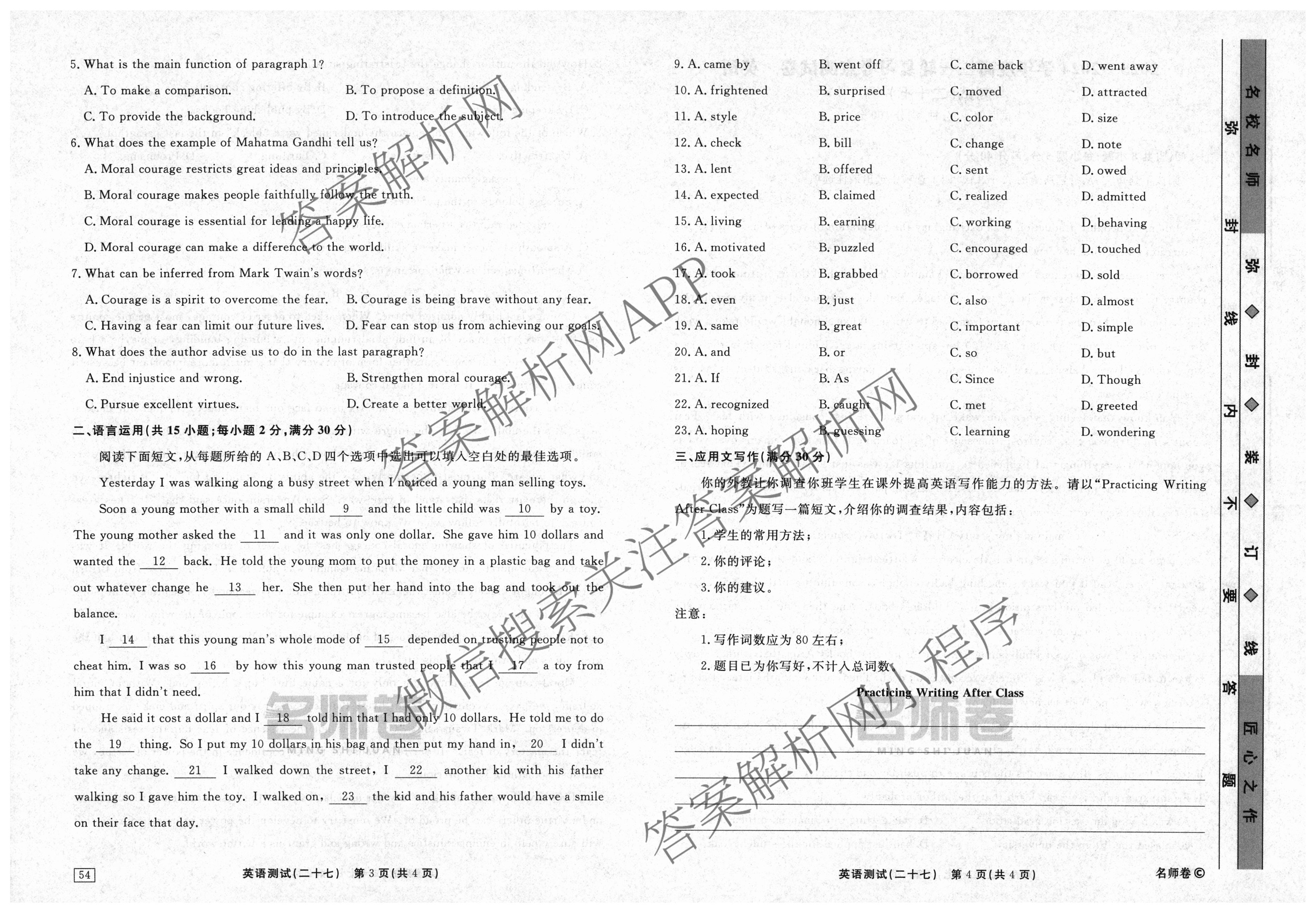 衡水名师卷2023-2024学年度高三一轮复习考点测试卷英语(40分钟实心菱形)(二十七)27试题