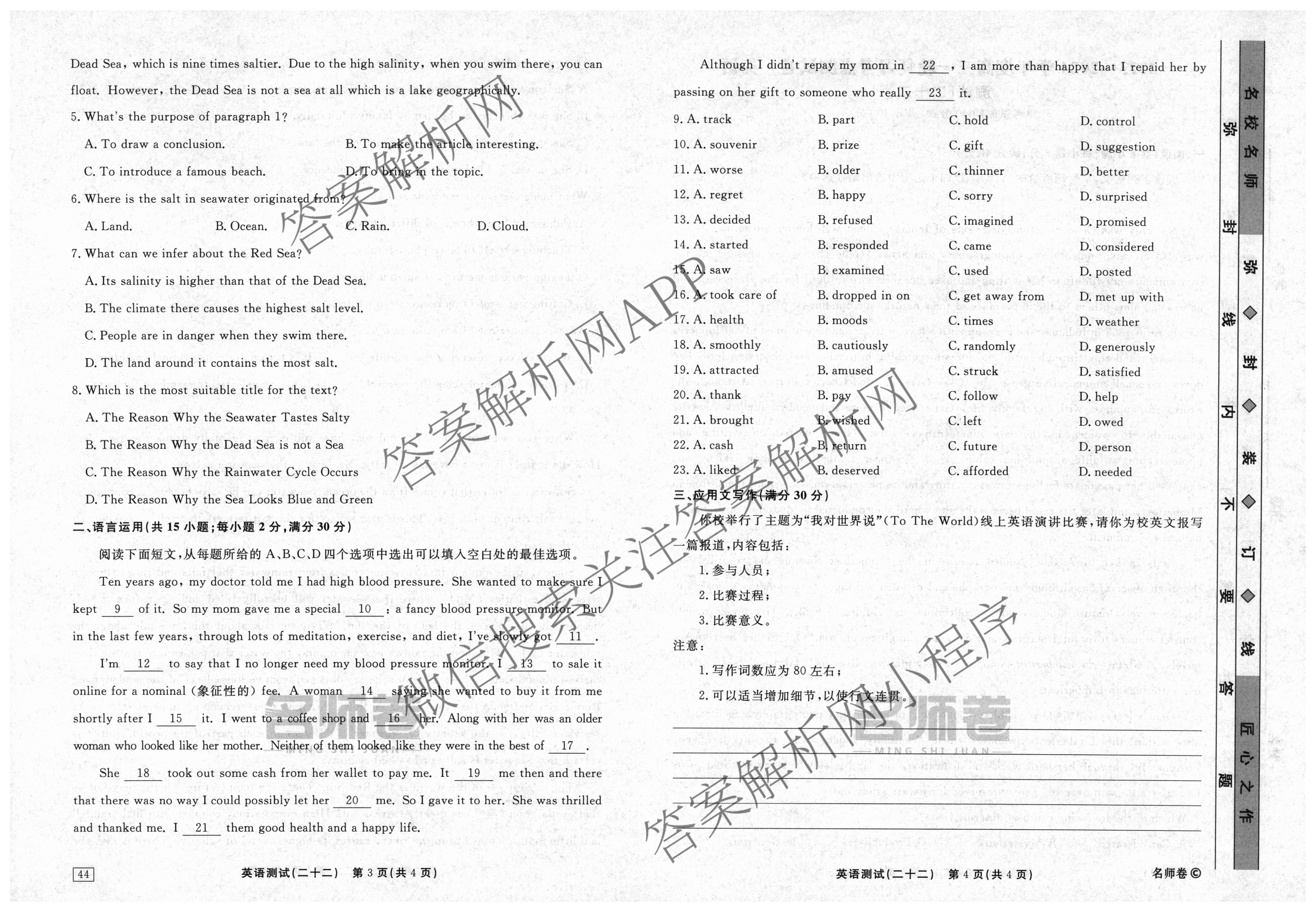 衡水名师卷2023-2024学年度高三一轮复习考点测试卷英语(40分钟实心菱形)(二十二)22试题