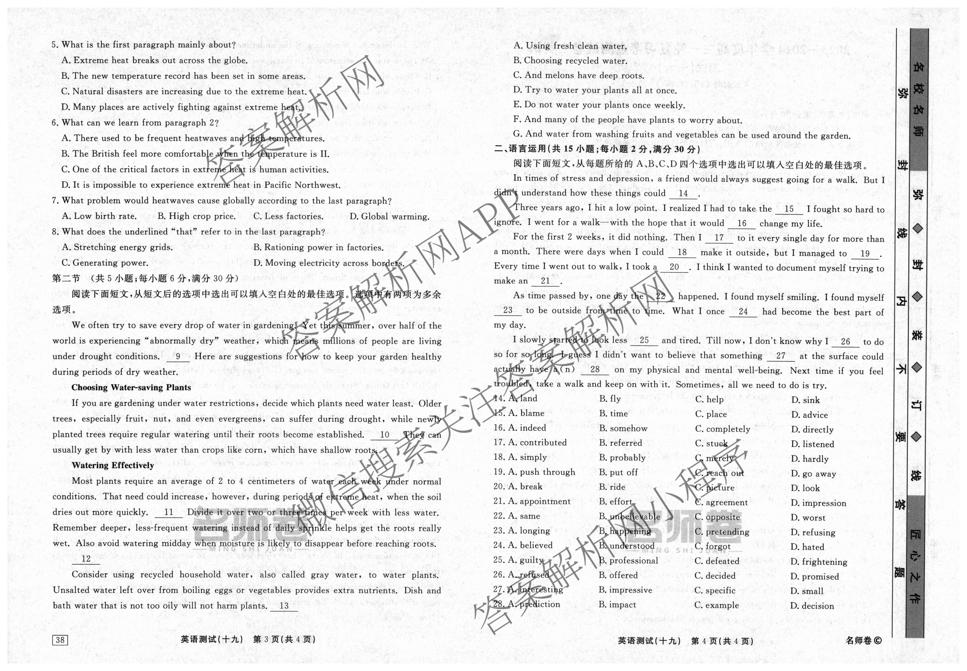 衡水名师卷2023-2024学年度高三一轮复习考点测试卷英语(40分钟实心菱形)(十九)19试题