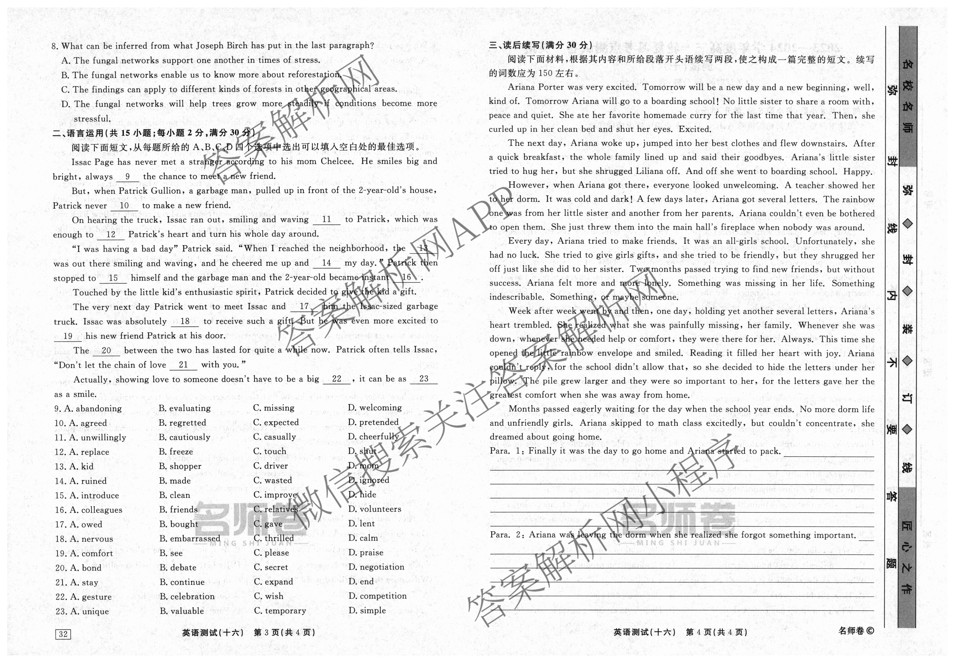 衡水名师卷2023-2024学年度高三一轮复习考点测试卷英语(40分钟实心菱形)(十六)16试题