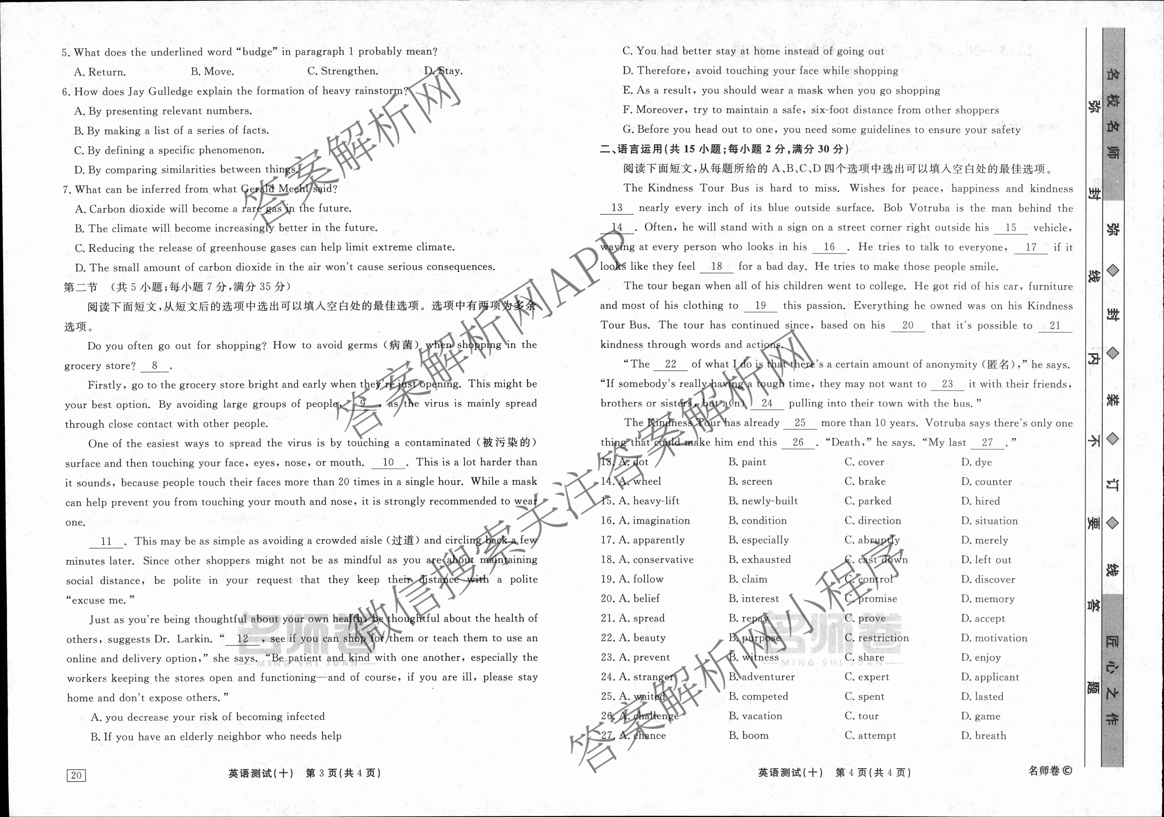 衡水名师卷2023-2024学年度高三一轮复习考点测试卷英语(40分钟实心菱形)(十)10试题
